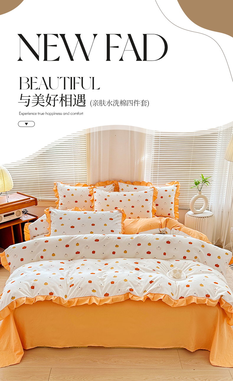 商品名称:佳一家纺 2025新款亲肤水洗棉四件套系列 小南瓜