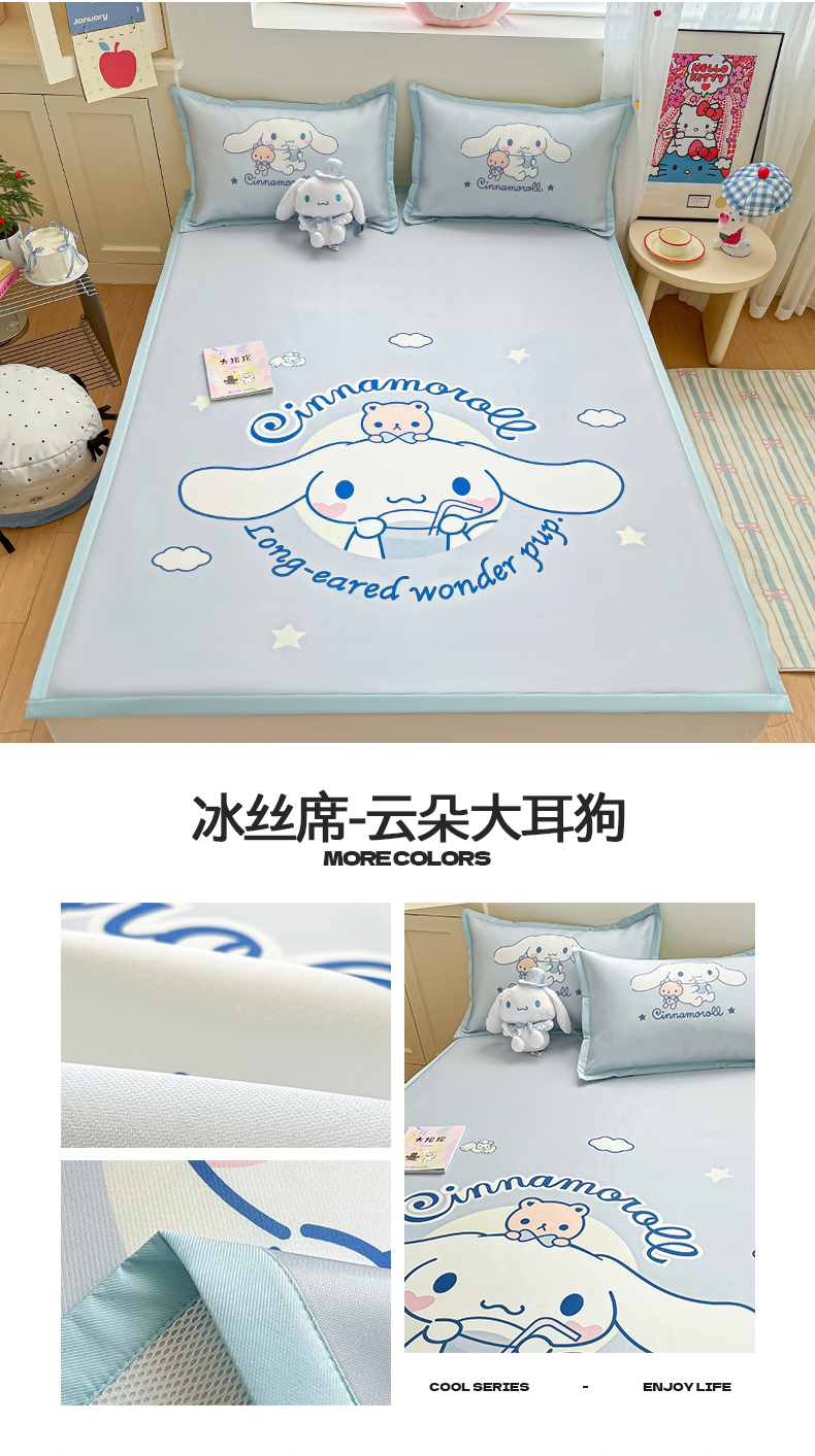 金爱家 2025新款A类三丽鸥授权数码印花中分子1200D凉感冰丝宽边凉感软席 冰丝席-童话美乐蒂