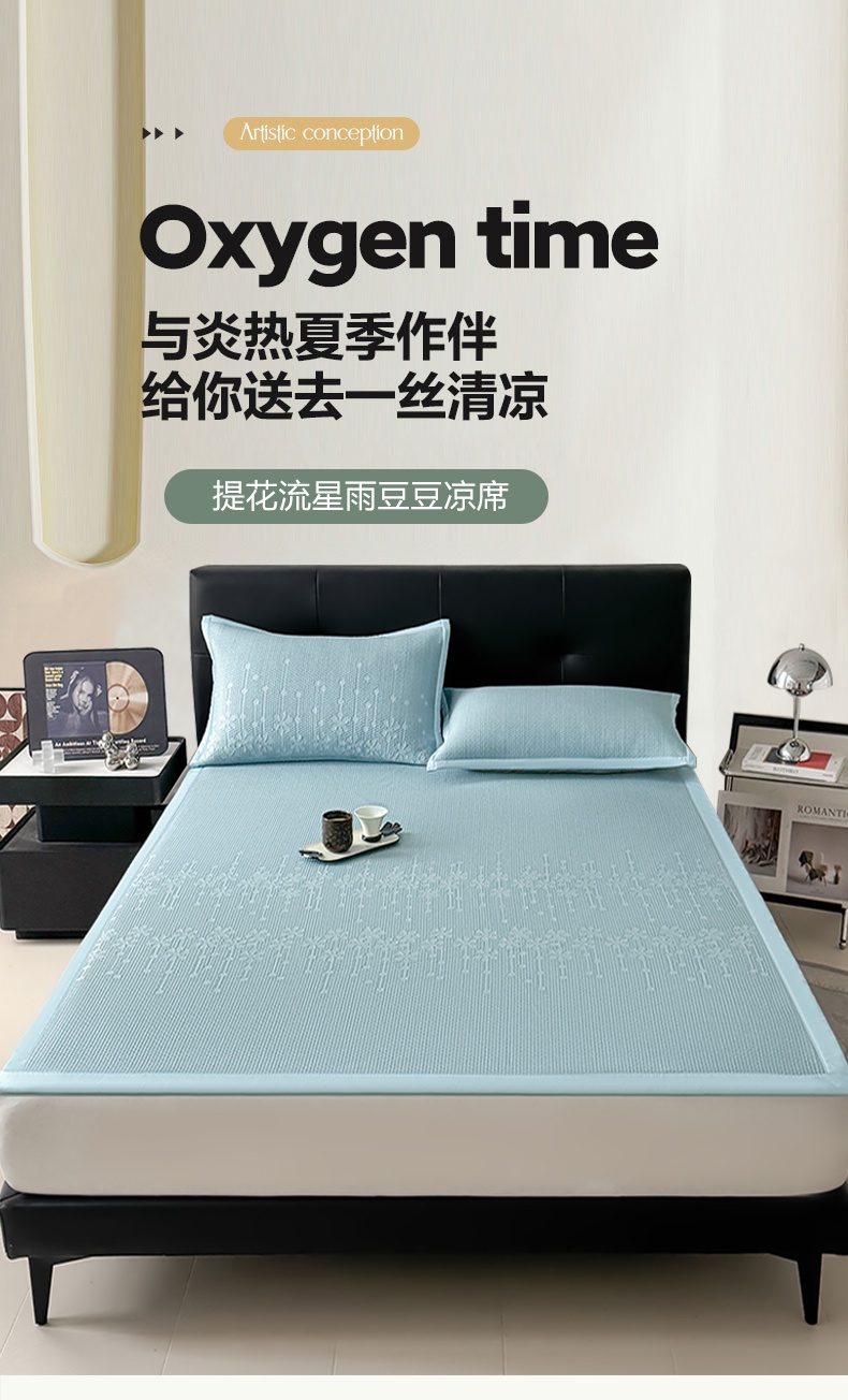 (总)慕木家纺 2025新品A类PE提花冰豆豆凉席床流星雨系列(可供跨境压缩)