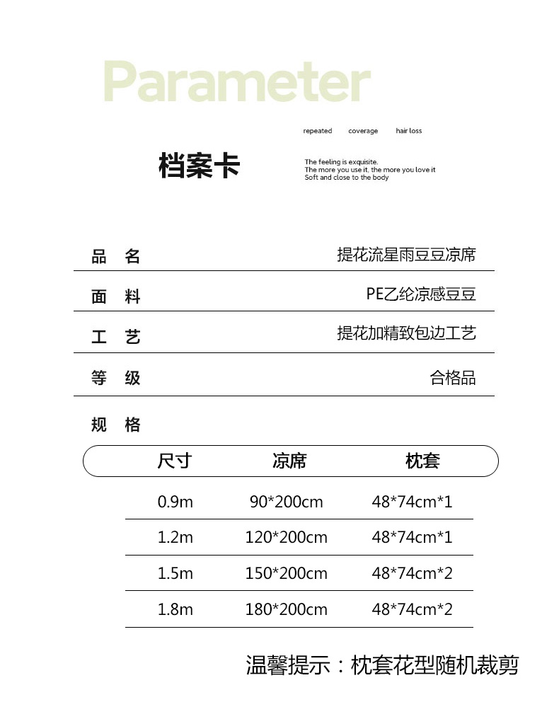 商品名称:(总)慕木家纺 2025新品A类PE提花冰豆豆凉席床流星雨系列(可供跨境压缩)