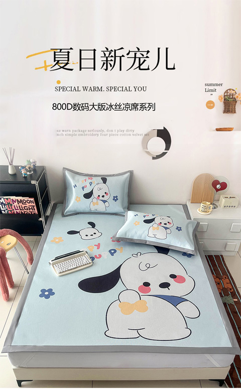 倾慕家纺 800D数码大版冰丝凉席 调皮小狗