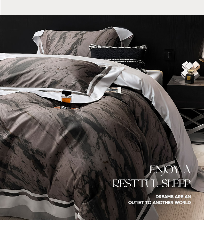 商品名称:A类母婴级天丝棉夹棉床盖床笠四件套全棉纯棉纯色长绒棉真丝保护罩高级感印花床上用品 布里奇-灰