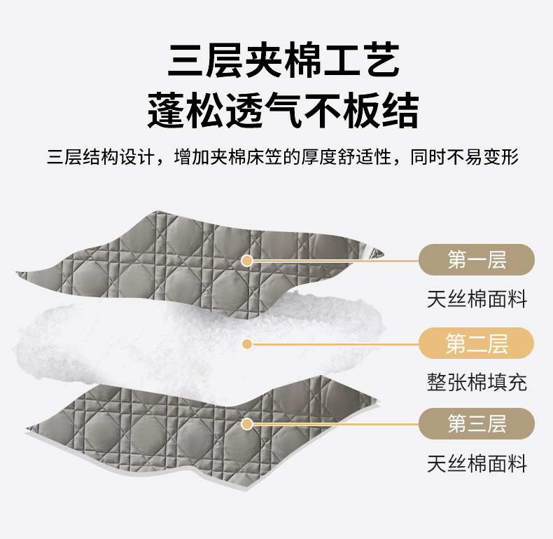 (总)2025A类母婴级长绒棉夹棉床笠三件套纯棉全棉加厚席梦思床罩床套四季款保护罩,茶绿,黛紫,慕蓝,奶玉,颜粉