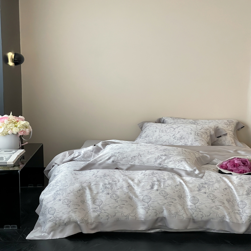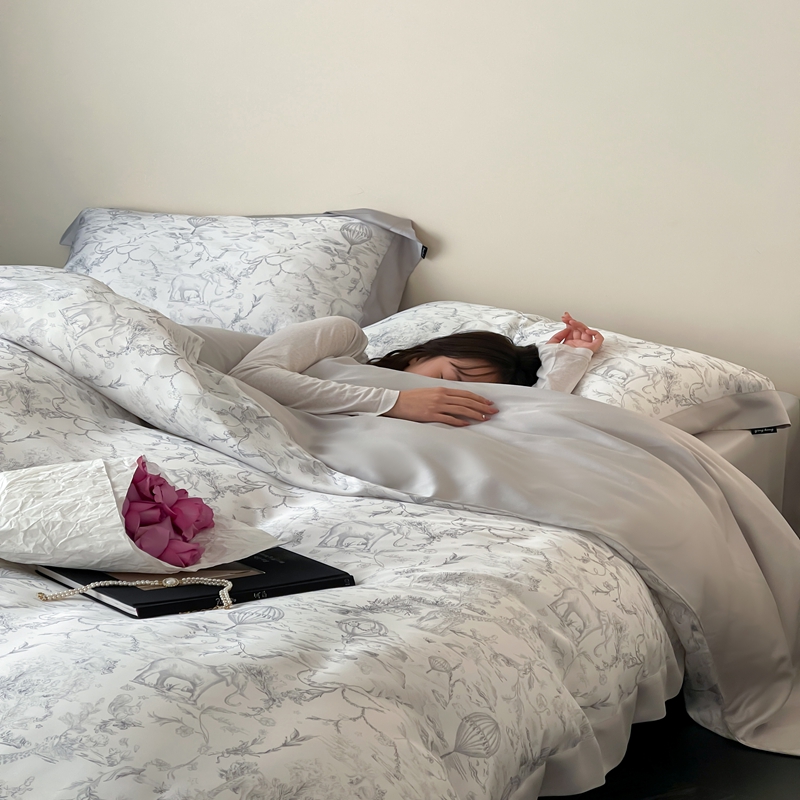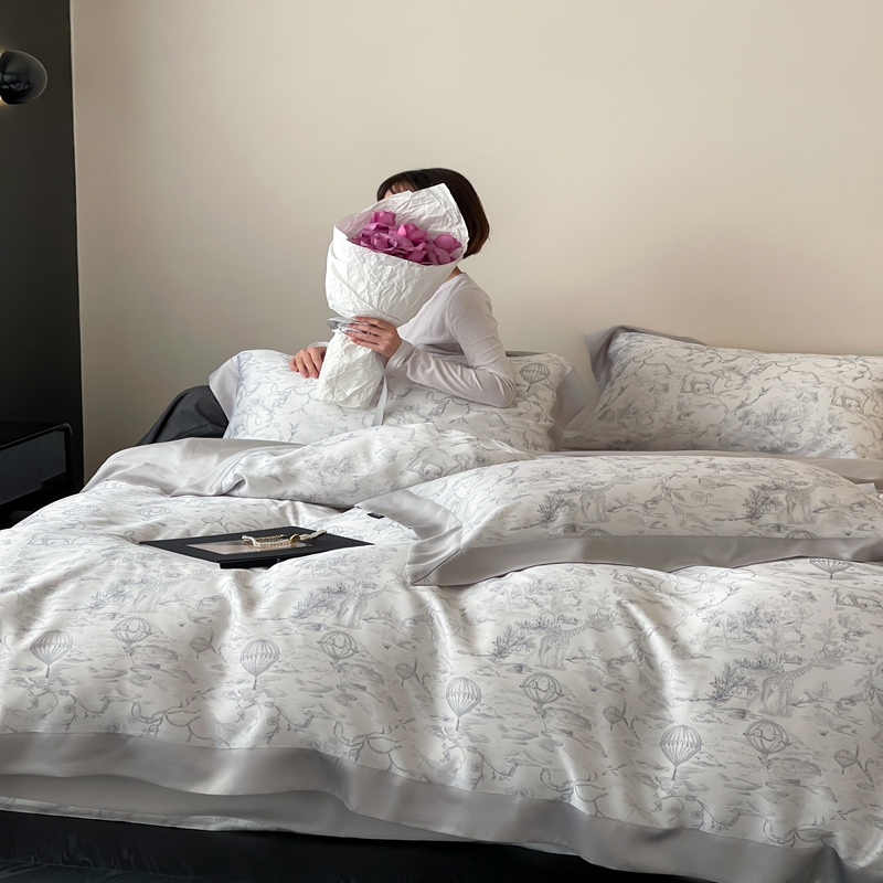 佳汐蓝家纺 2025新款60支兰精天丝数码印花四件套-夏威夷 夏威夷-灰