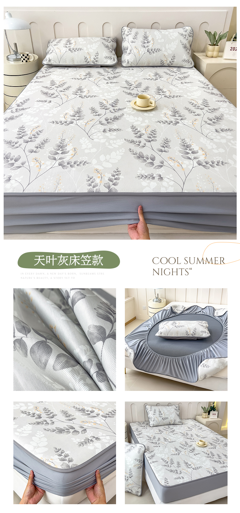 2025年新款600D丝滑冰丝凉席-床笠款 天叶灰