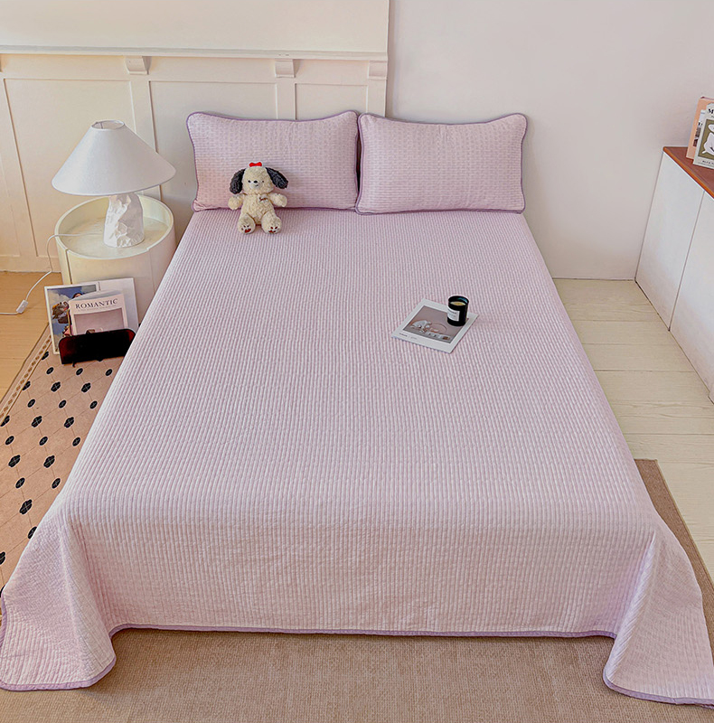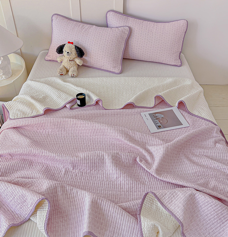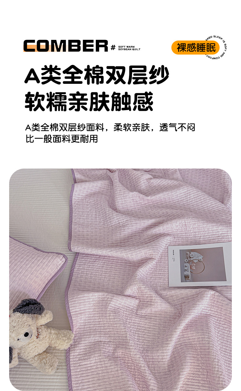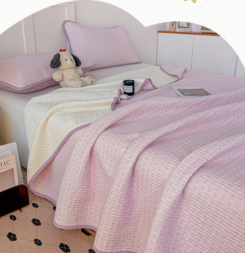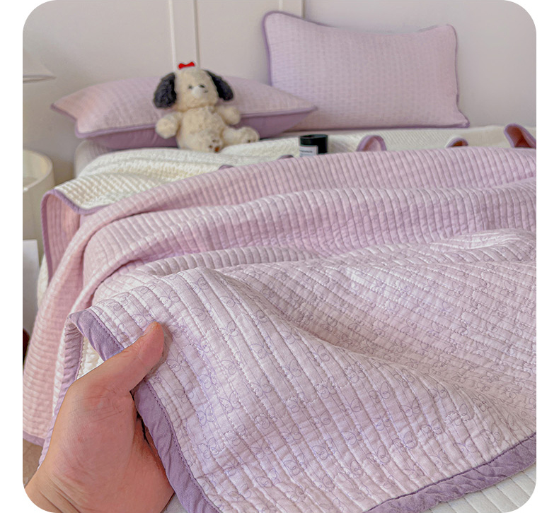 • 91家纺网 家纺一手货源 找家纺 2025新款A类纯棉双层纱床盖  梦蝶-紫