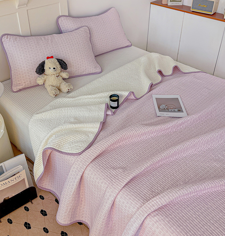 2025新款A类纯棉双层纱床盖 梦蝶-紫
