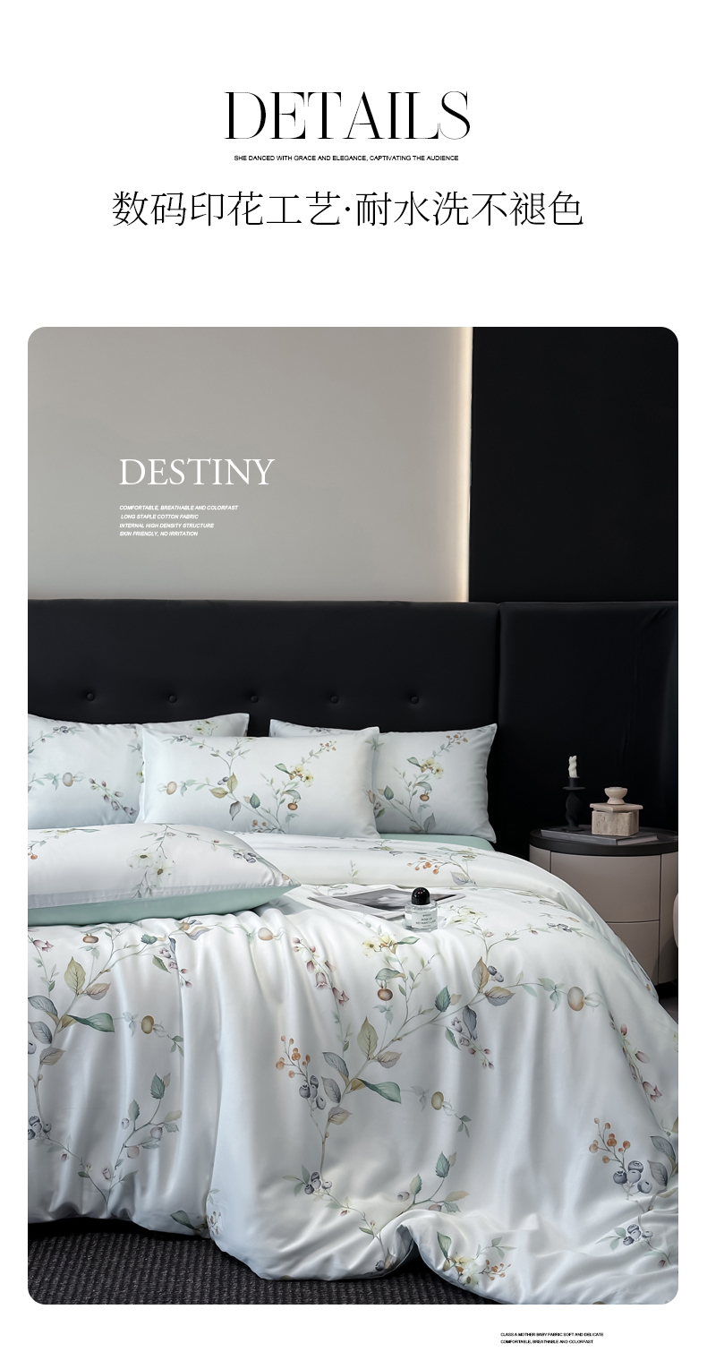商品名称:慕晨 2025新款莱赛尔天丝数码印花四件套莱赛尔夏被四件套天丝夏凉被直播热款四件套 阡陌