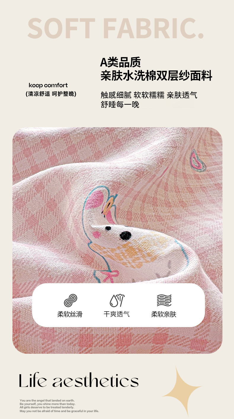 (总)妖妖家纺 2023新款超柔水洗双层纱三件套宿舍床,风铃花,后花园,花儿与兔,及风情,尽相思,静谧,可爱棕熊,兰花草,柿柿如意,涂鸦爱心,夏日樱桃,小熊花园,月季花香