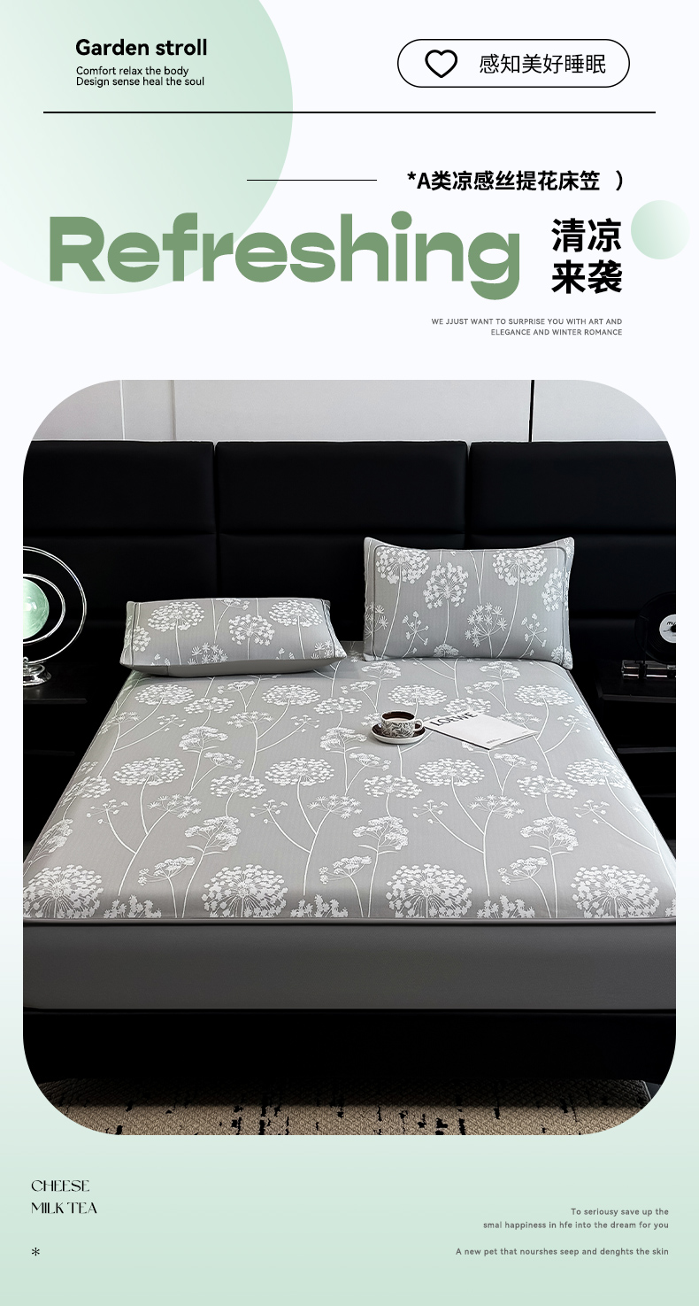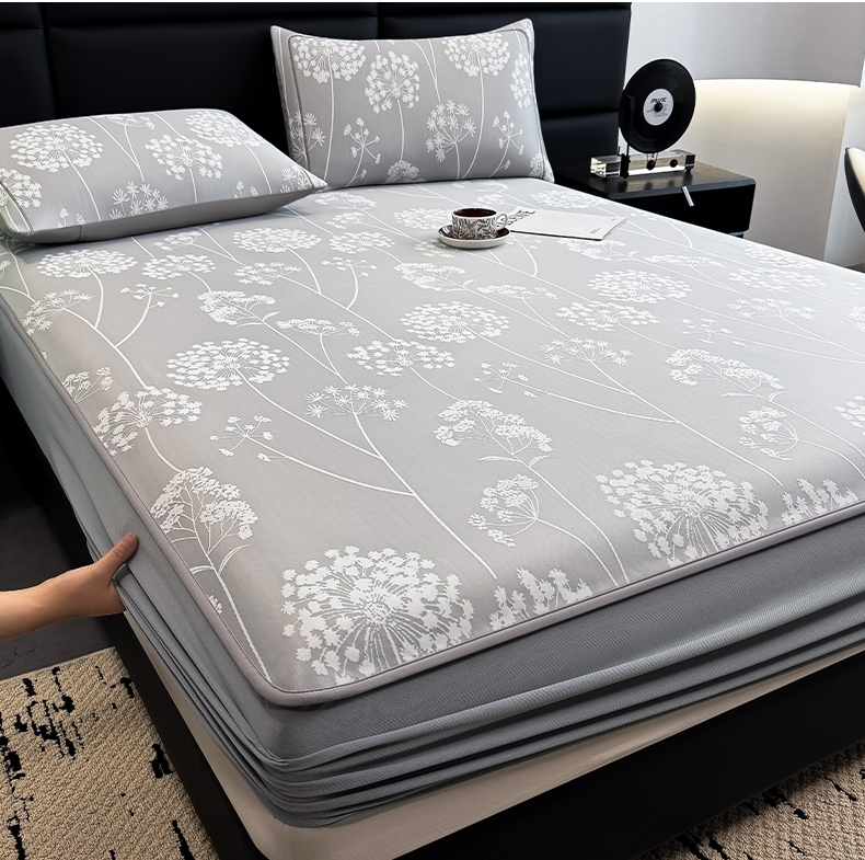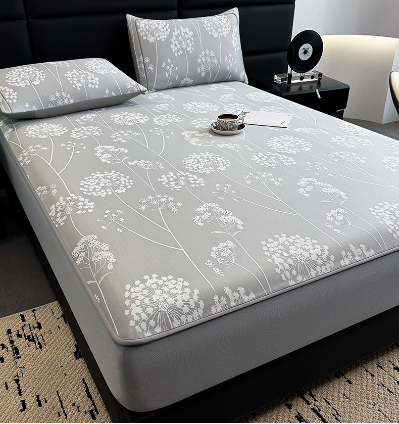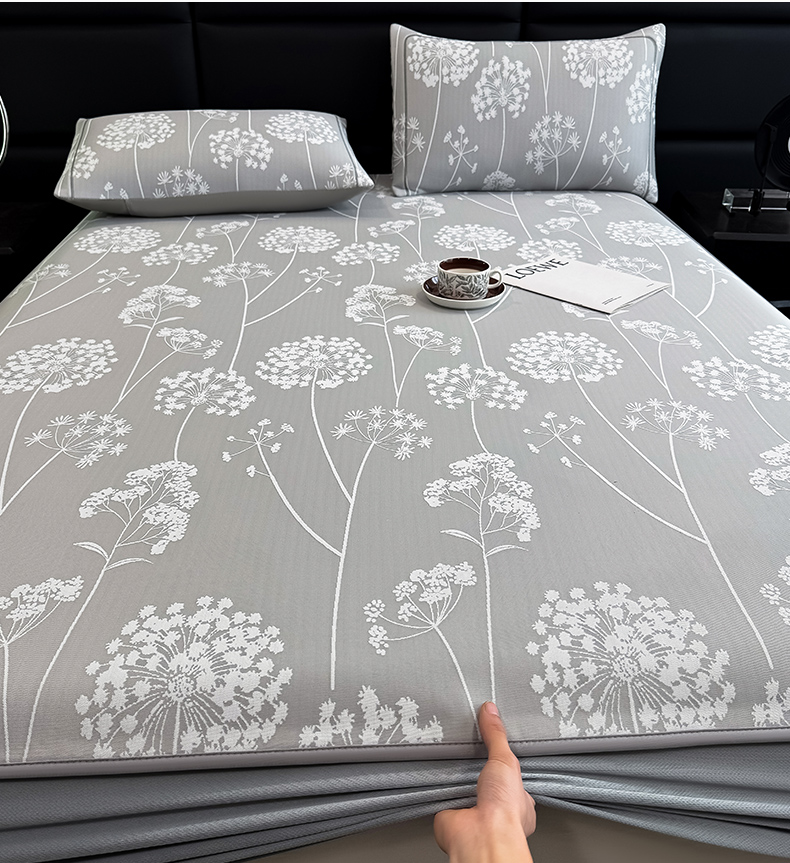 全季家居 2025新款5A乙纶全PE花卉轻奢提花凉感软凉席席子 落盏-浅灰 床笠
