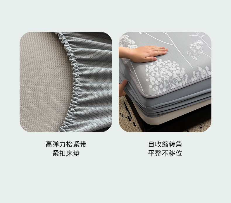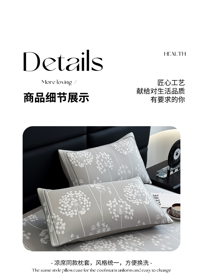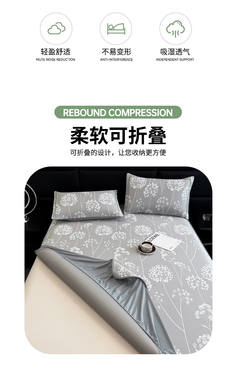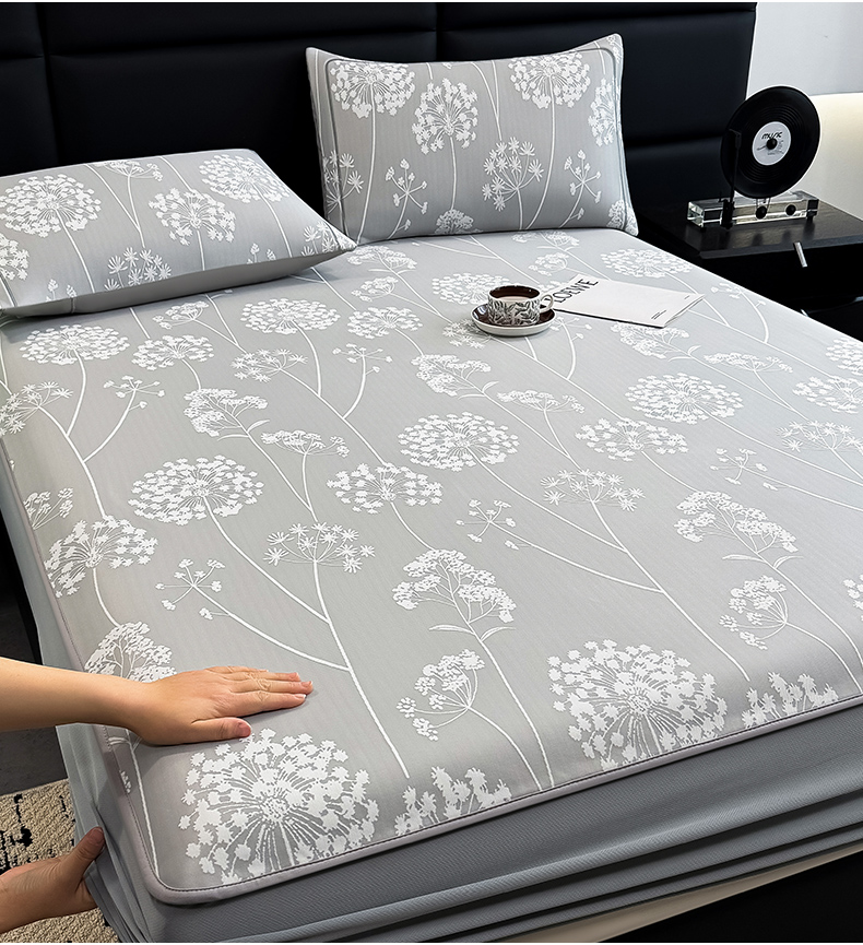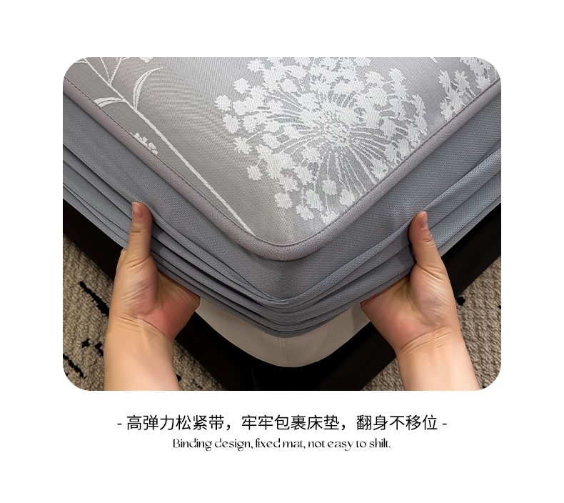 商品名称:全季家居 2025新款5A乙纶全PE花卉轻奢提花凉感软凉席席子 落盏-浅灰 床笠