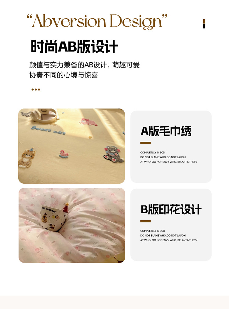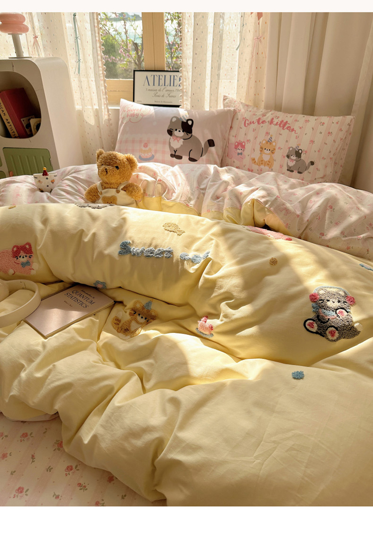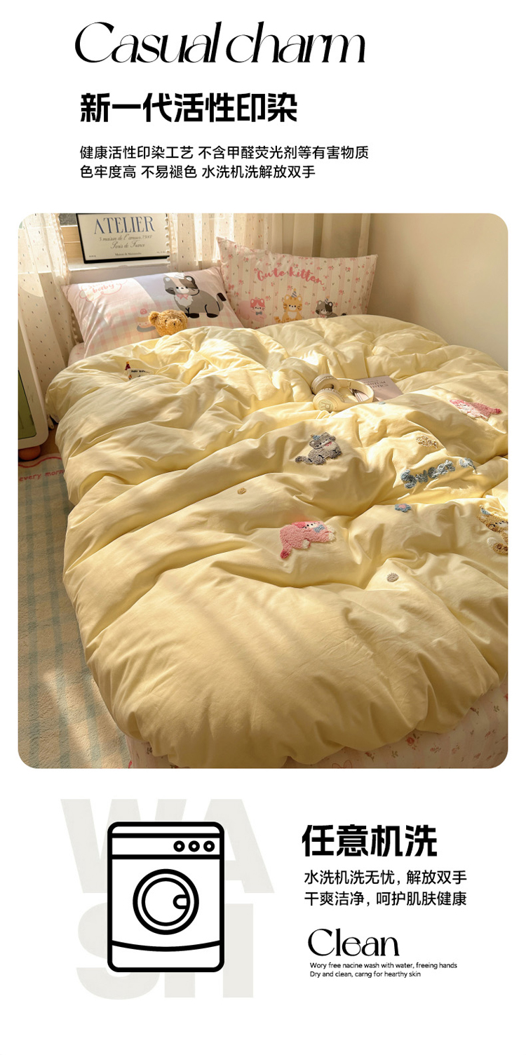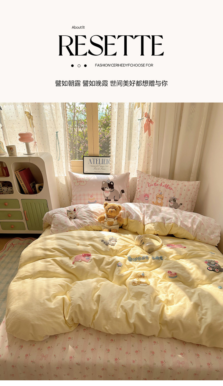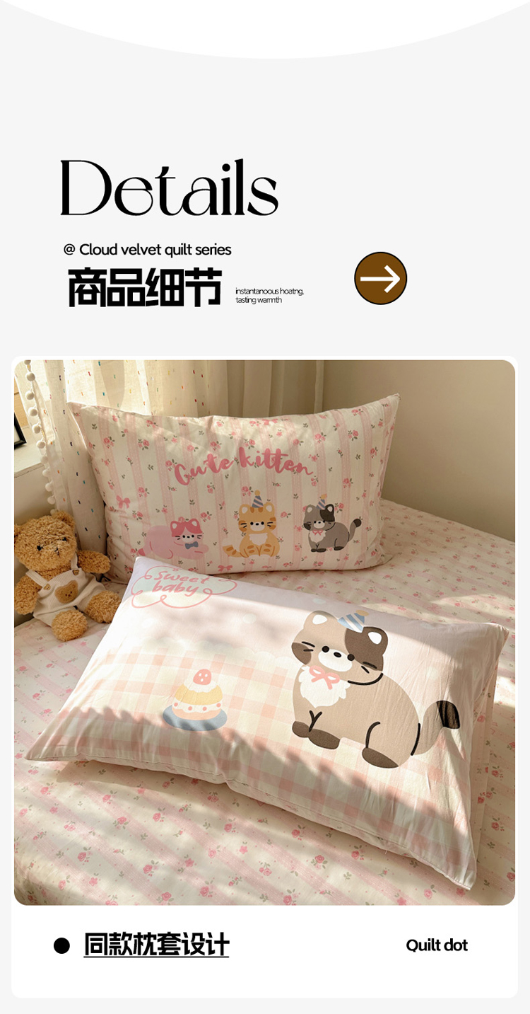 商品名称:丽涵家纺 2025新款全棉纯棉13372数码印花毛巾绣四件套 萌喵时光