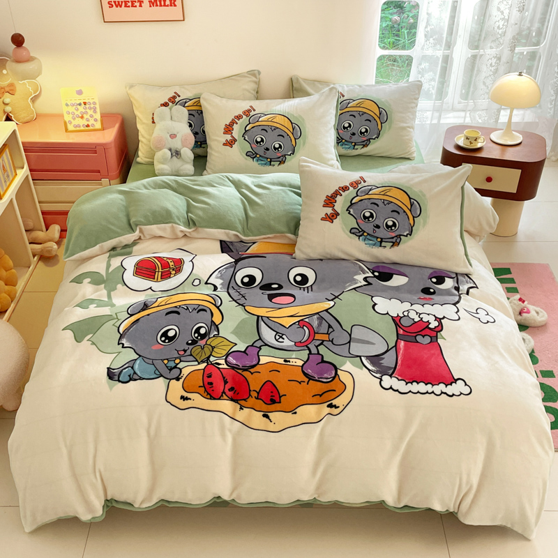 商品名称:鸿森林 2025新款牛奶绒大版数码印花喜羊羊与灰太狼系列四件套 青春时光