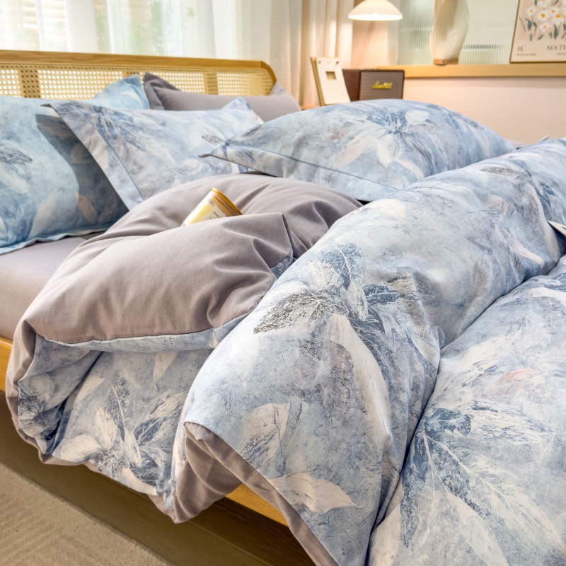 (总)鸿森林 2025新款全棉纯棉磨毛印花四件套,德芙-粉,花吟-黄,浪漫花舞-兰,露西-灰,律动-粉,落樱-粉,曼城-蓝,莫奈-灰,莫奈-咖,沙慕-蓝