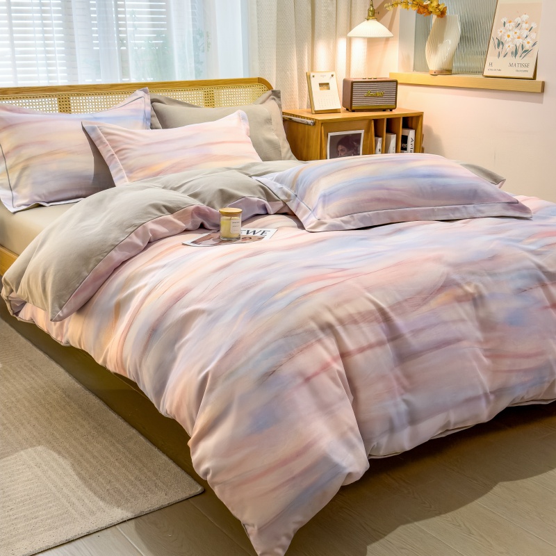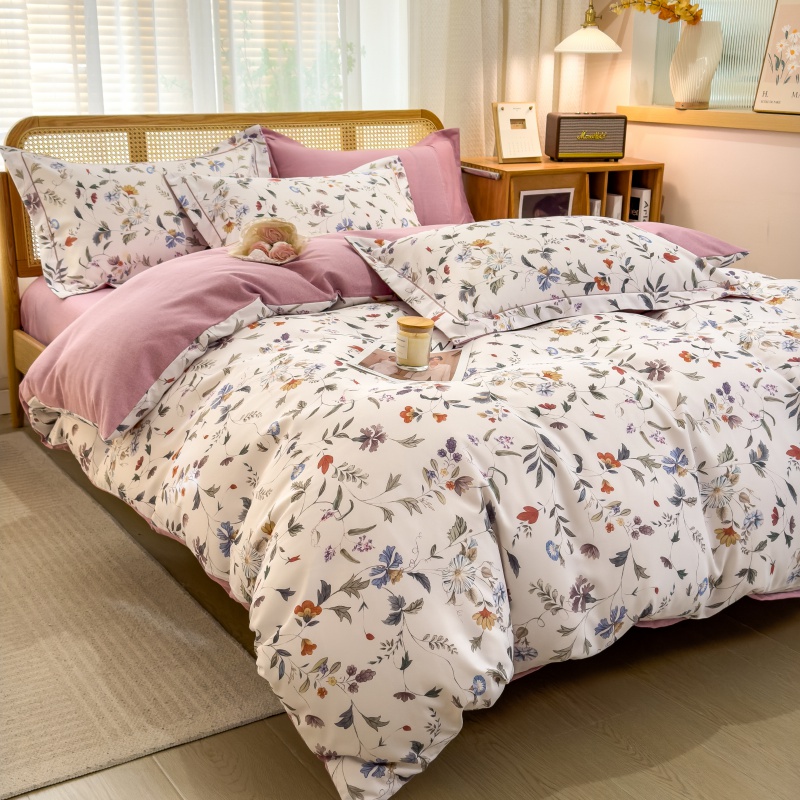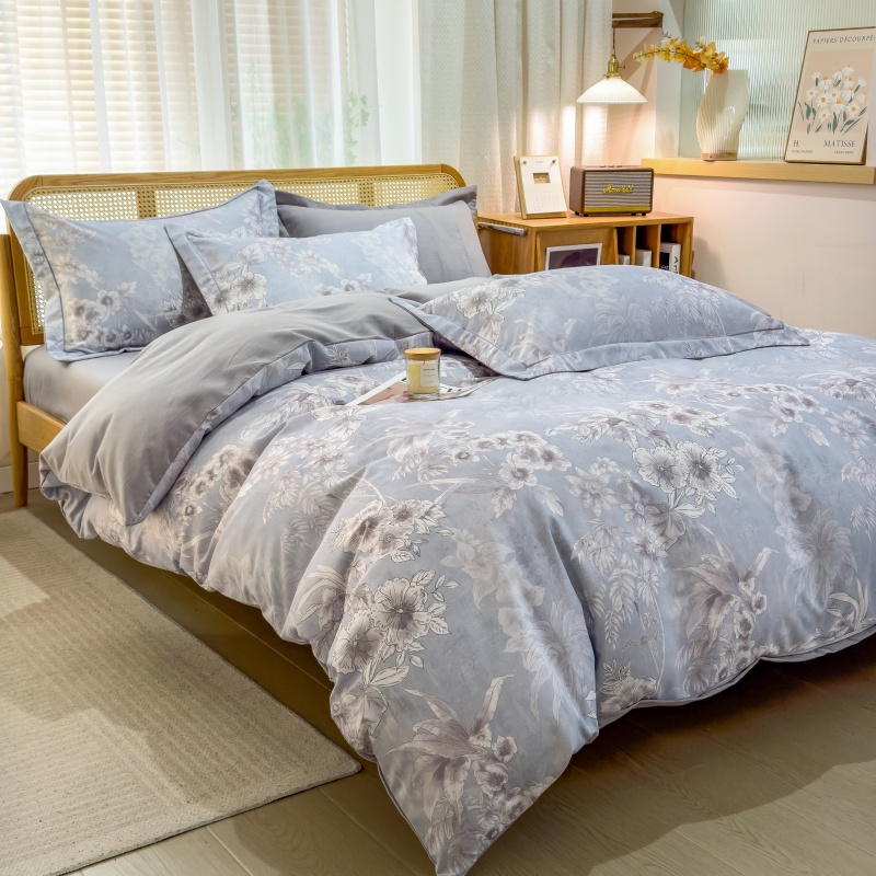(总)鸿森林 2025新款全棉纯棉磨毛印花四件套,德芙-粉,花吟-黄,浪漫花舞-兰,露西-灰,律动-粉,落樱-粉,曼城-蓝,莫奈-灰,莫奈-咖,沙慕-蓝