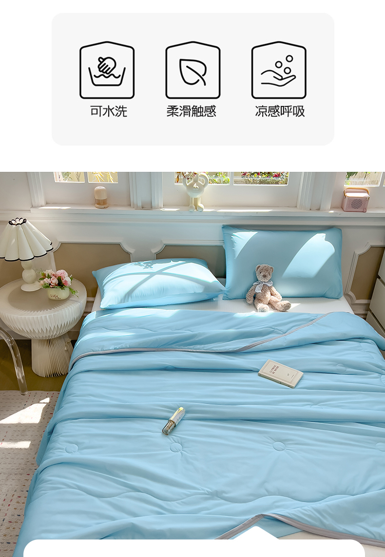 (总)鸿森林 2025新款纯色凉感丝包边夏被空调被,薄荷绿,宾利蓝,米白,皮粉,绅士灰,天空蓝,象牙白,熏衣紫,烟灰