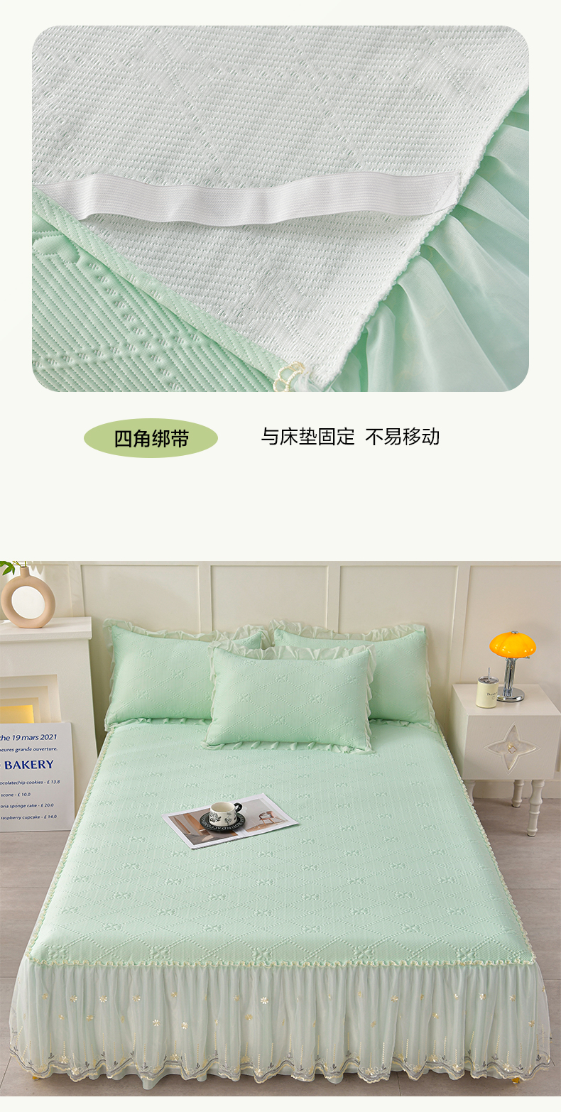 畅畅家纺 2025新款网红爆款夏季立体冰豆豆凉席床裙款三件套 爱心-浅绿