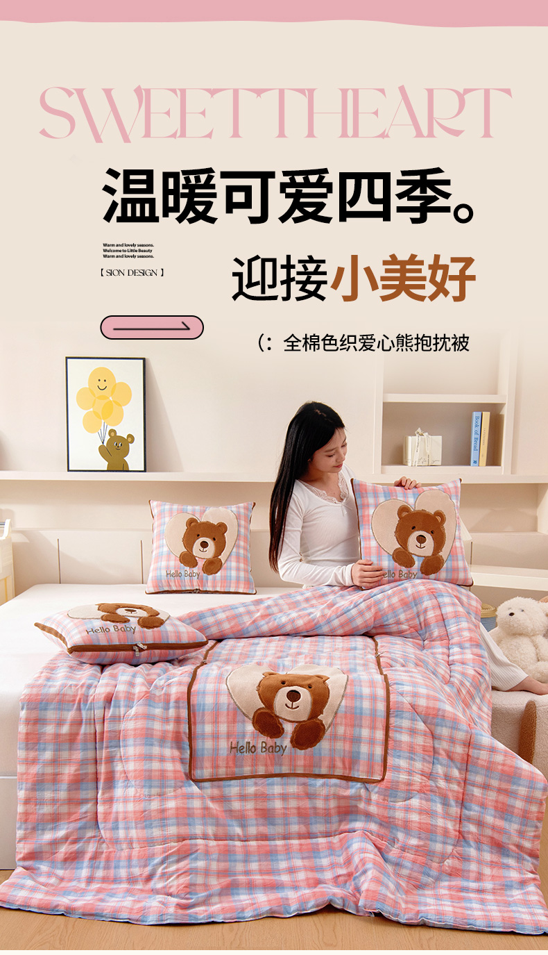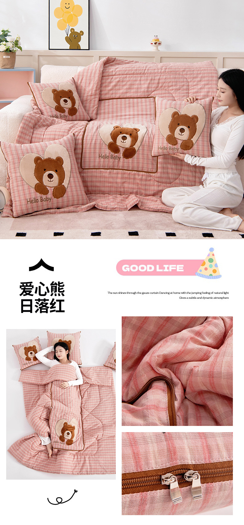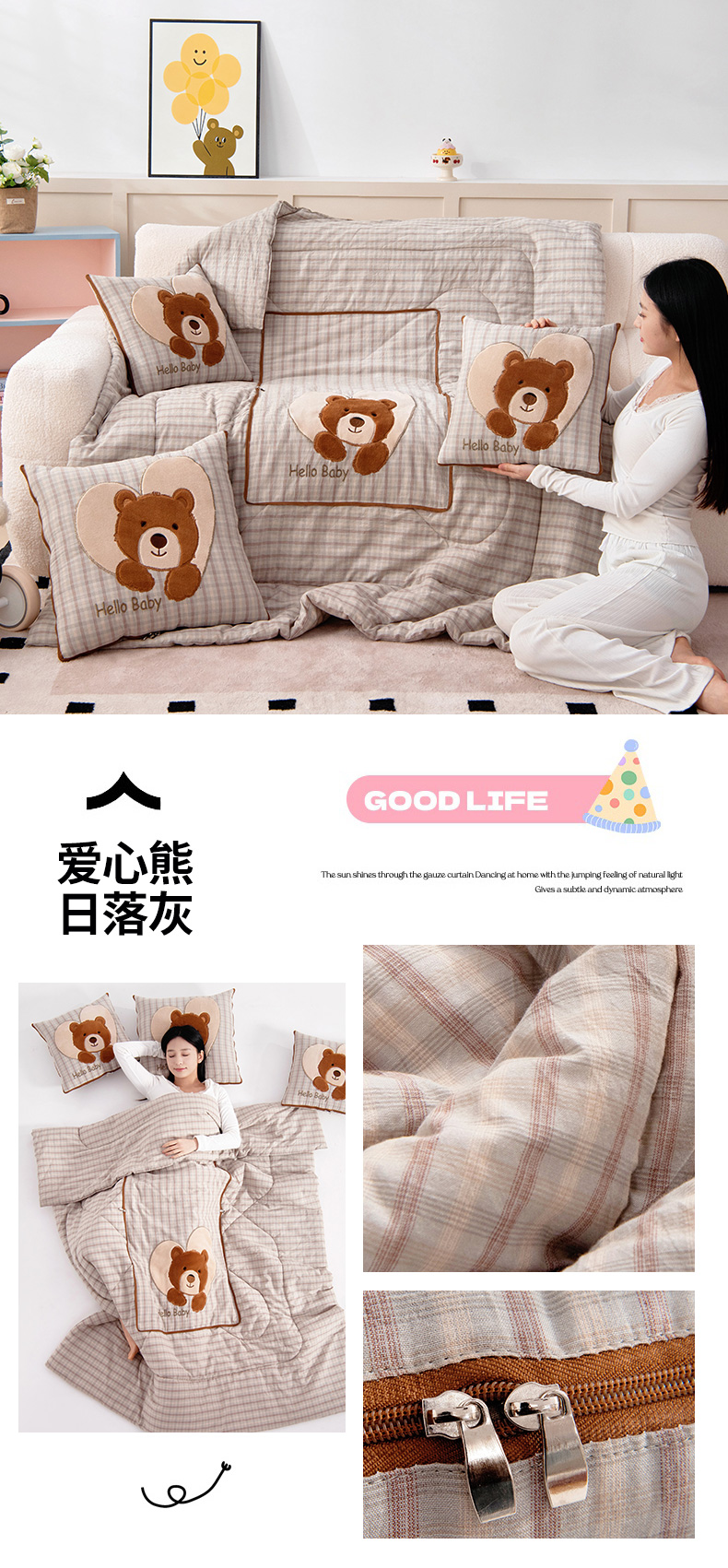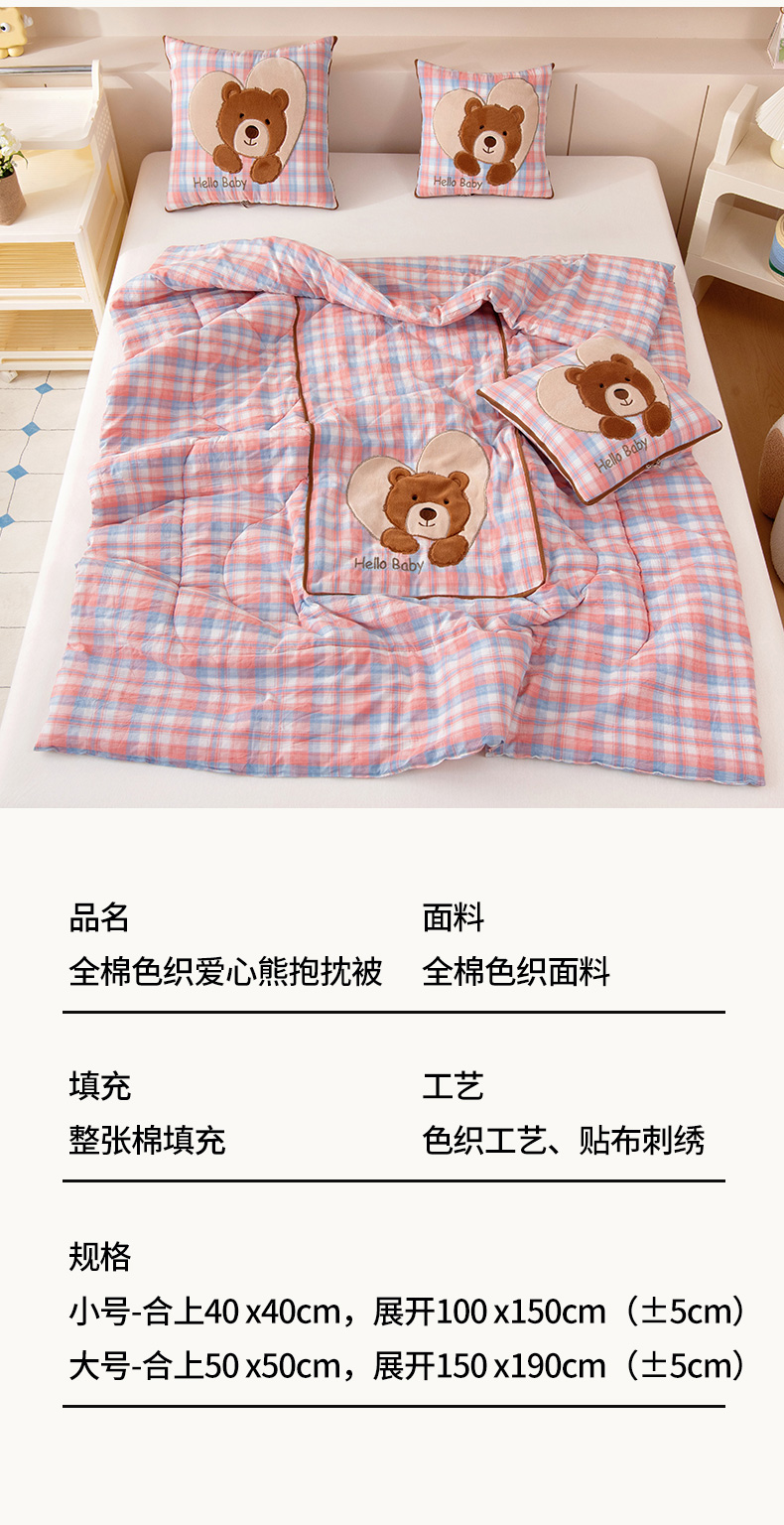 (总)阳光依佰抱枕被 2025新款全棉色织爱心熊抱抌被(控价小号券后不低于59元,大号不低于89元),爱心熊一日落红,爱心熊一日落灰,爱心熊一日落绿,爱心熊一星空桔,爱心熊一星空卡其