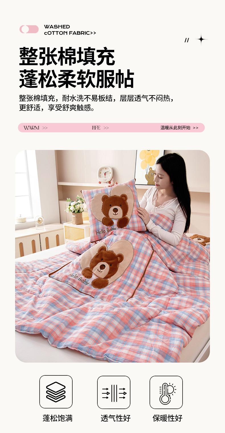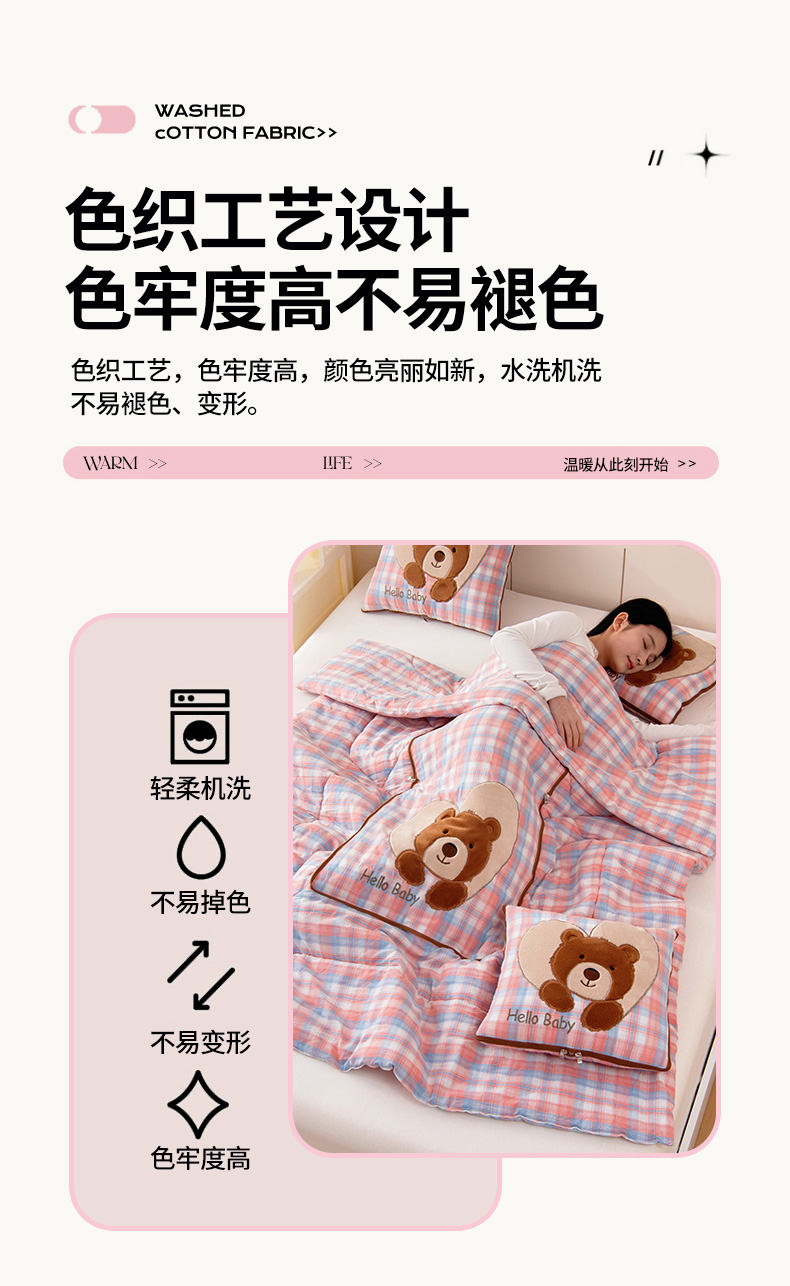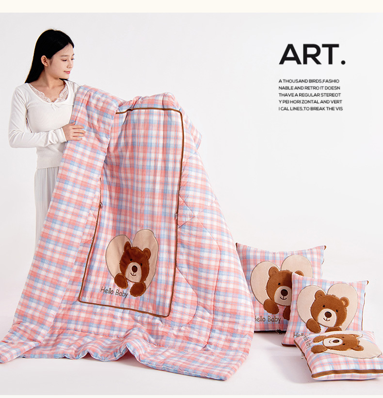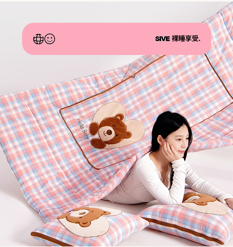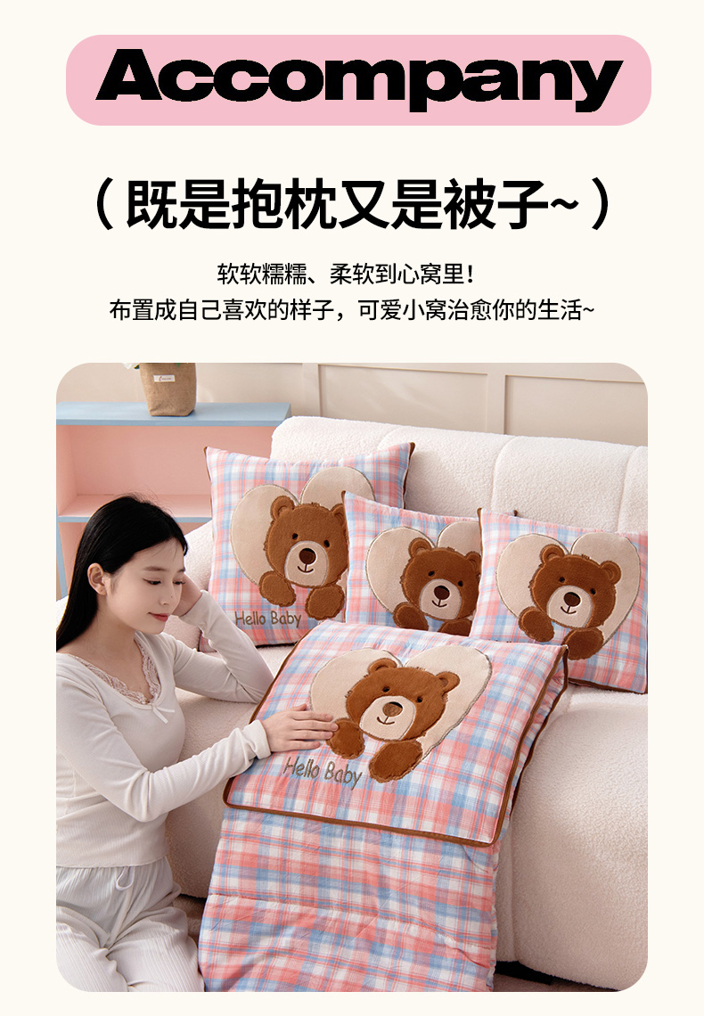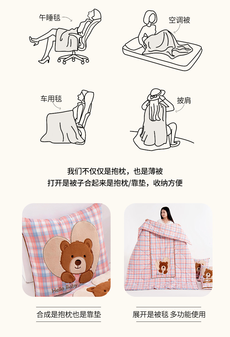 (总)阳光依佰抱枕被 2025新款全棉色织爱心熊抱抌被(控价小号券后不低于59元,大号不低于89元),爱心熊一日落红,爱心熊一日落灰,爱心熊一日落绿,爱心熊一星空桔,爱心熊一星空卡其
