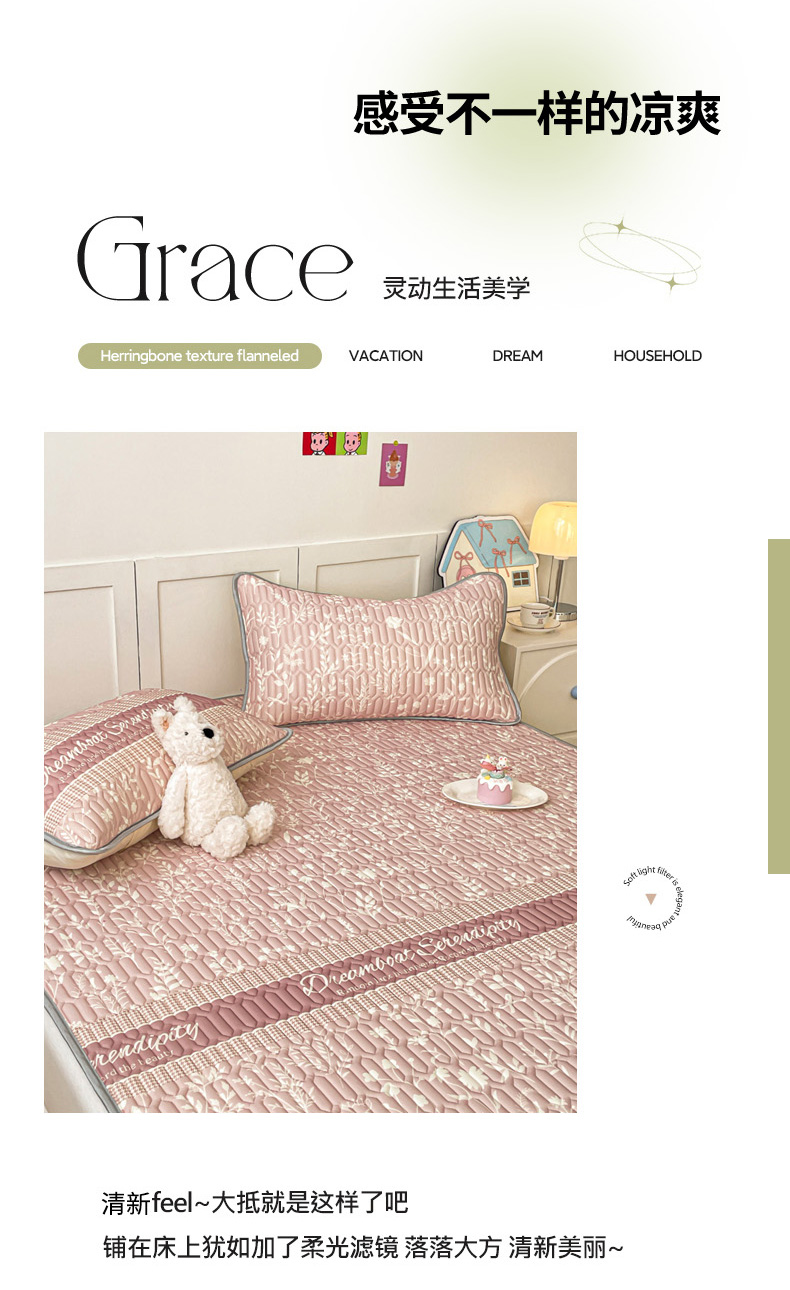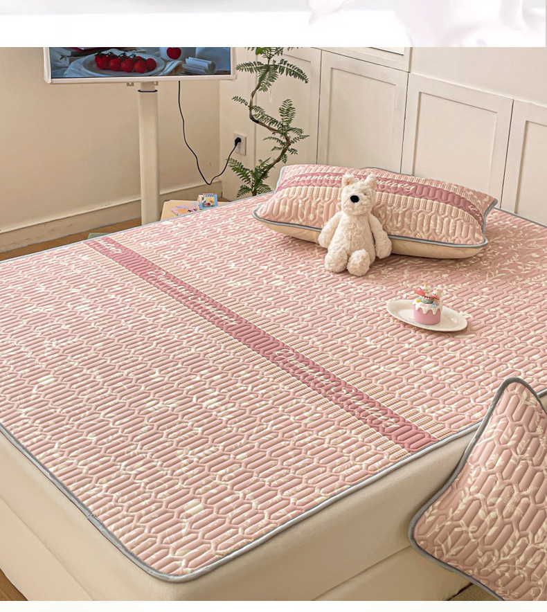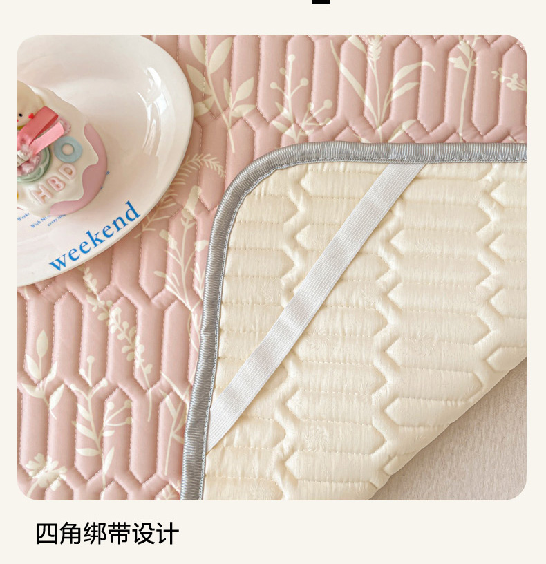 沐慕 2025新款高克重小清新乳胶凉席-风格一 粉漾花境