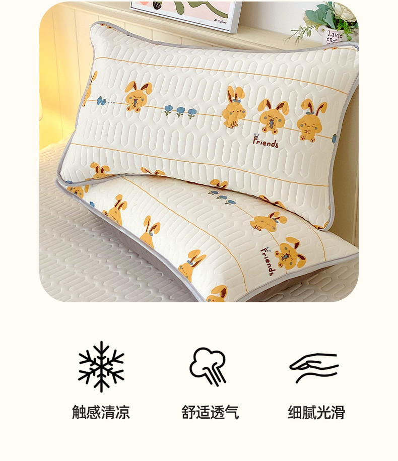 商品名称:芯宜佳 2025新款A类凉感丝乳胶单人枕套 萌萌兔