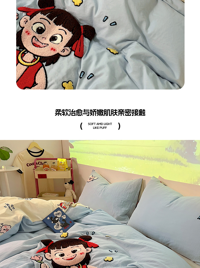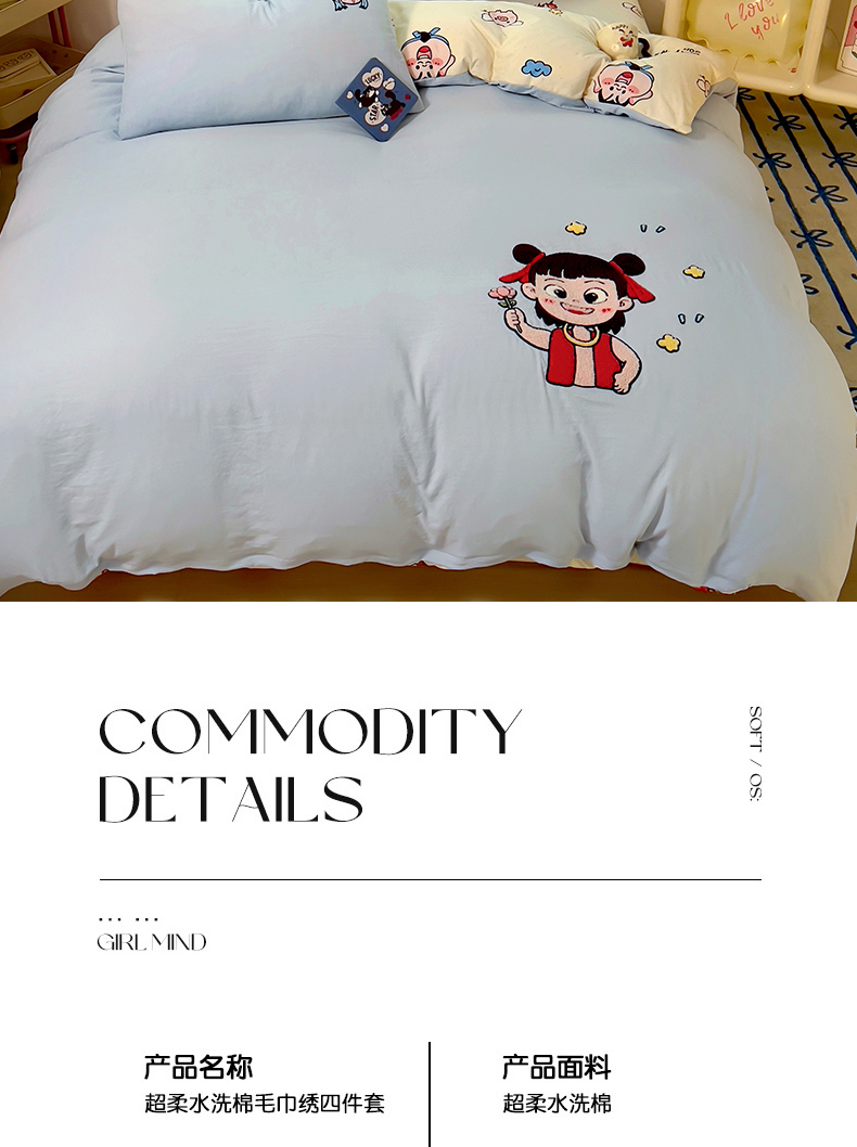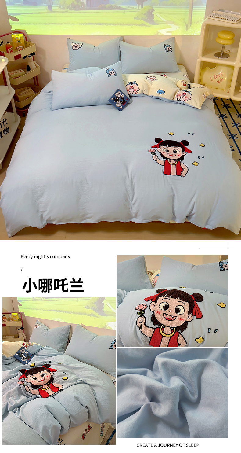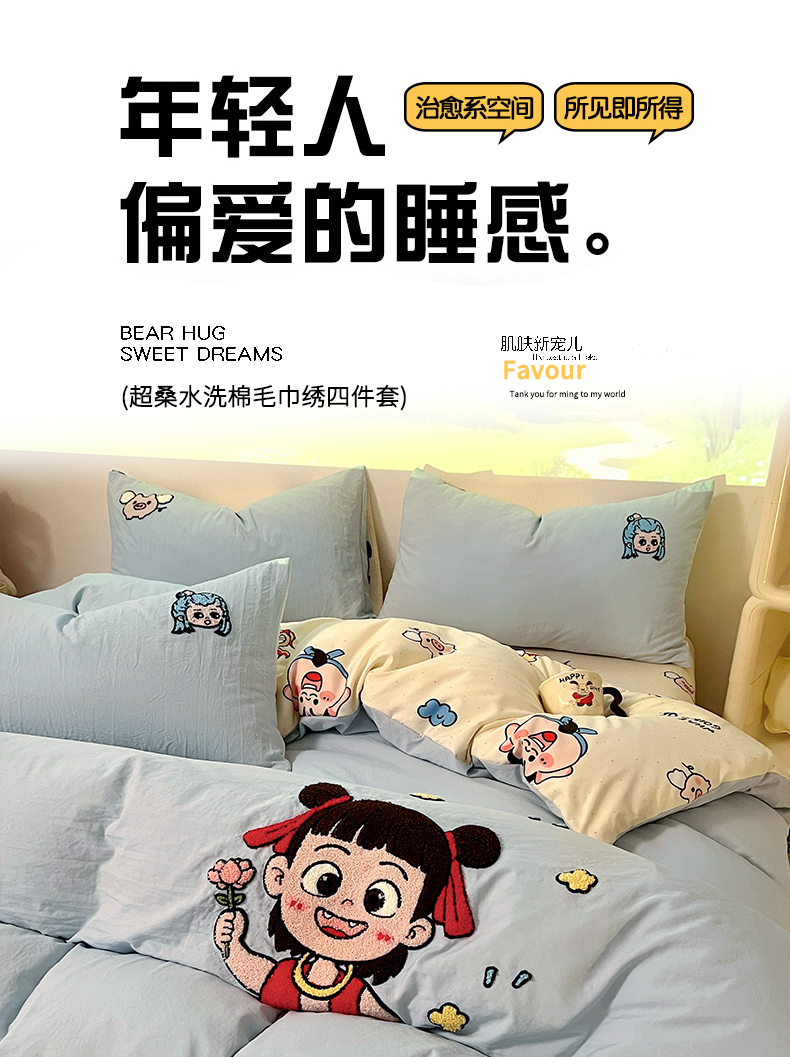 当前位置: 91家纺网 > 商品网购 > 床品套件 > 四件套 > 水洗棉四件套 > 易辰美 2025新款超软水洗棉毛巾绣四件套-系列二 小哪吒兰