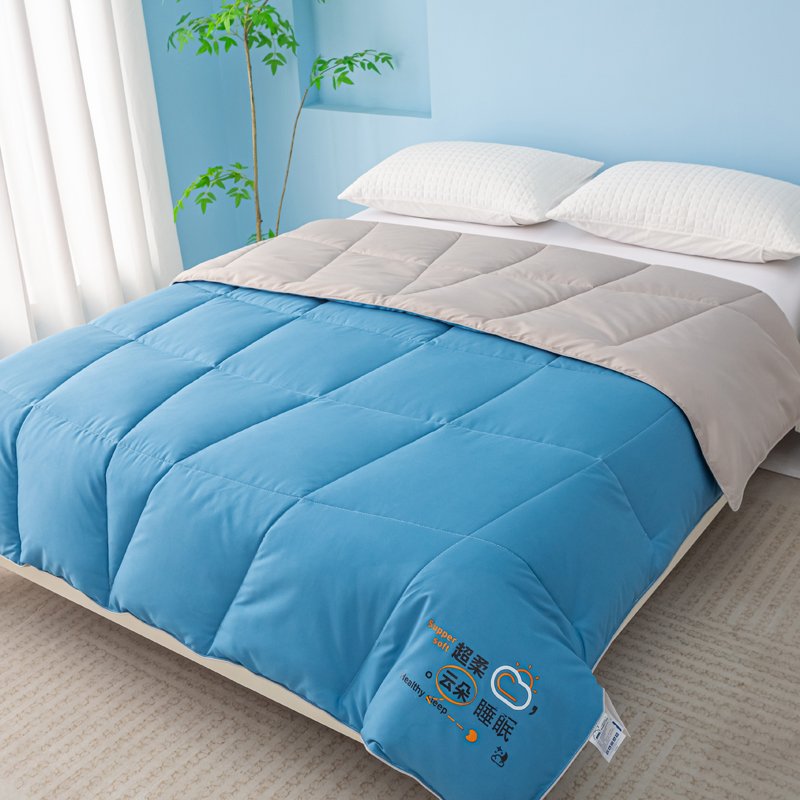 • 91家纺网 家纺一手货源 找家纺 好老表被业 2025新款超柔云朵被芯零压被子 超柔云感被蓝灰