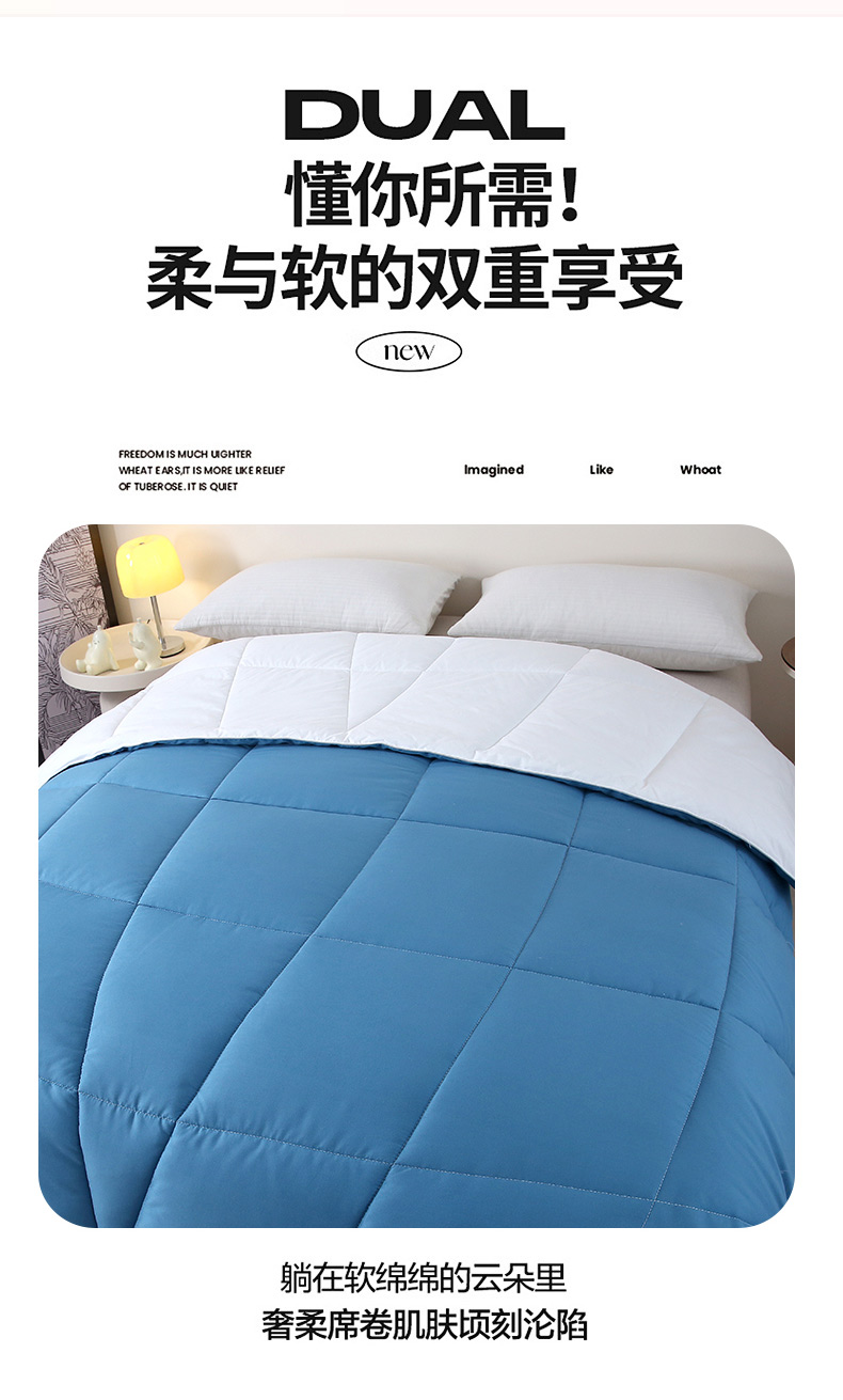 • 91家纺网 家纺一手货源 找家纺 好老表被业 2025新款超柔云朵被芯零压被子 云朵棉蓝白