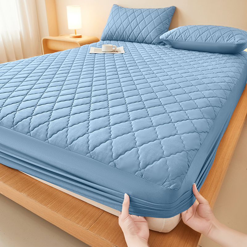 衿成家纺 2025新款跨境电商热款菱形格夹棉防水床笠支持大佬价跑量多尺寸可做-单床笠 L-白色