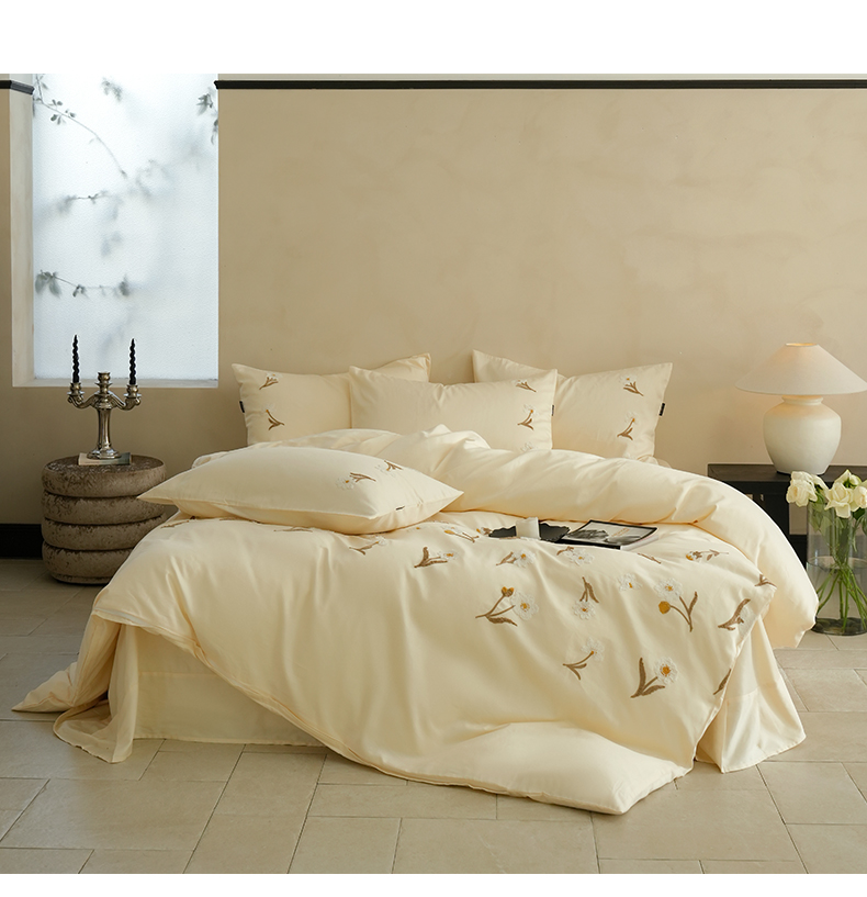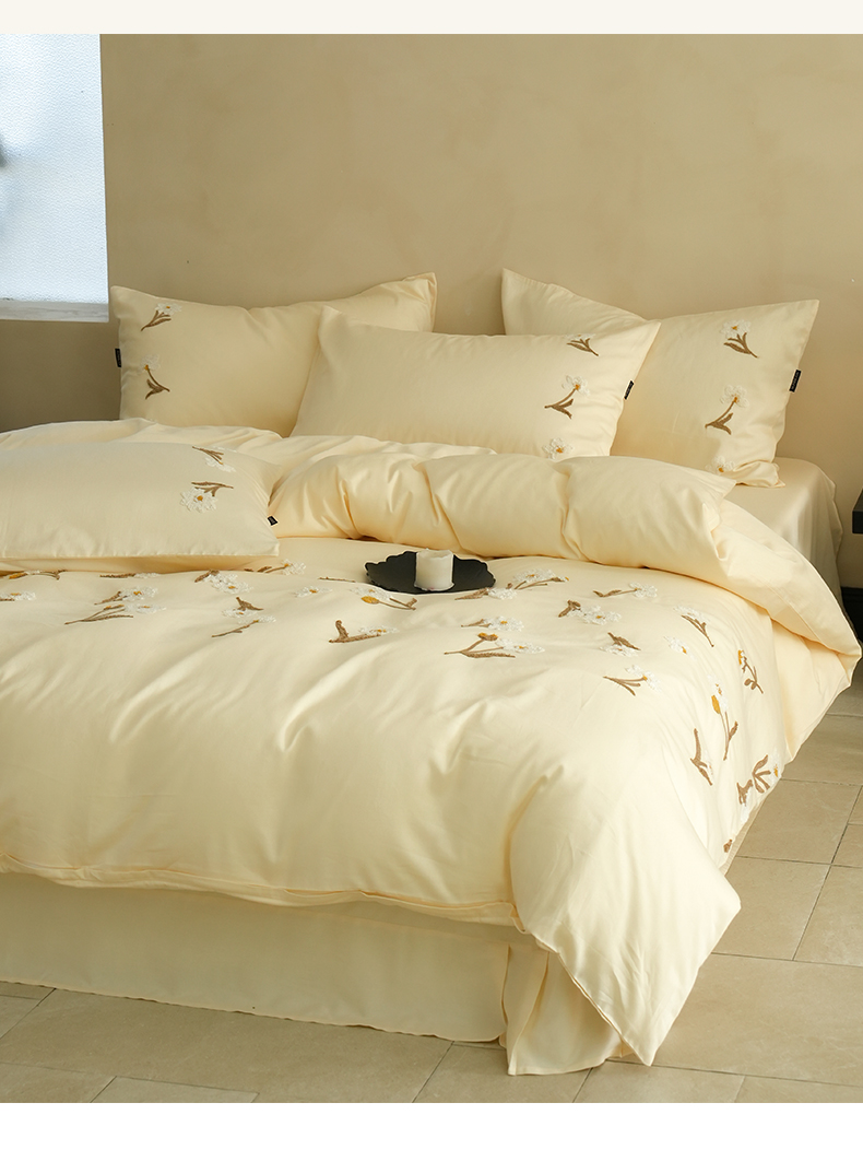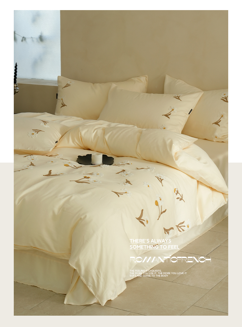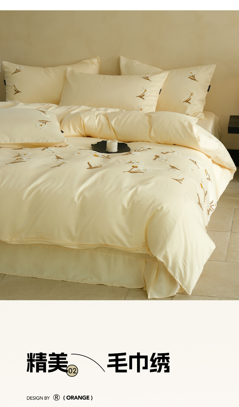 秀色家纺 2025新款小清新60s长绒棉四件套纯棉全棉毛巾绣被套床单轻奢床品-网红风 小雏菊