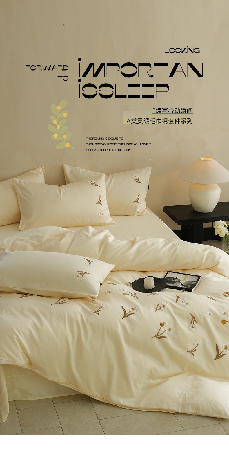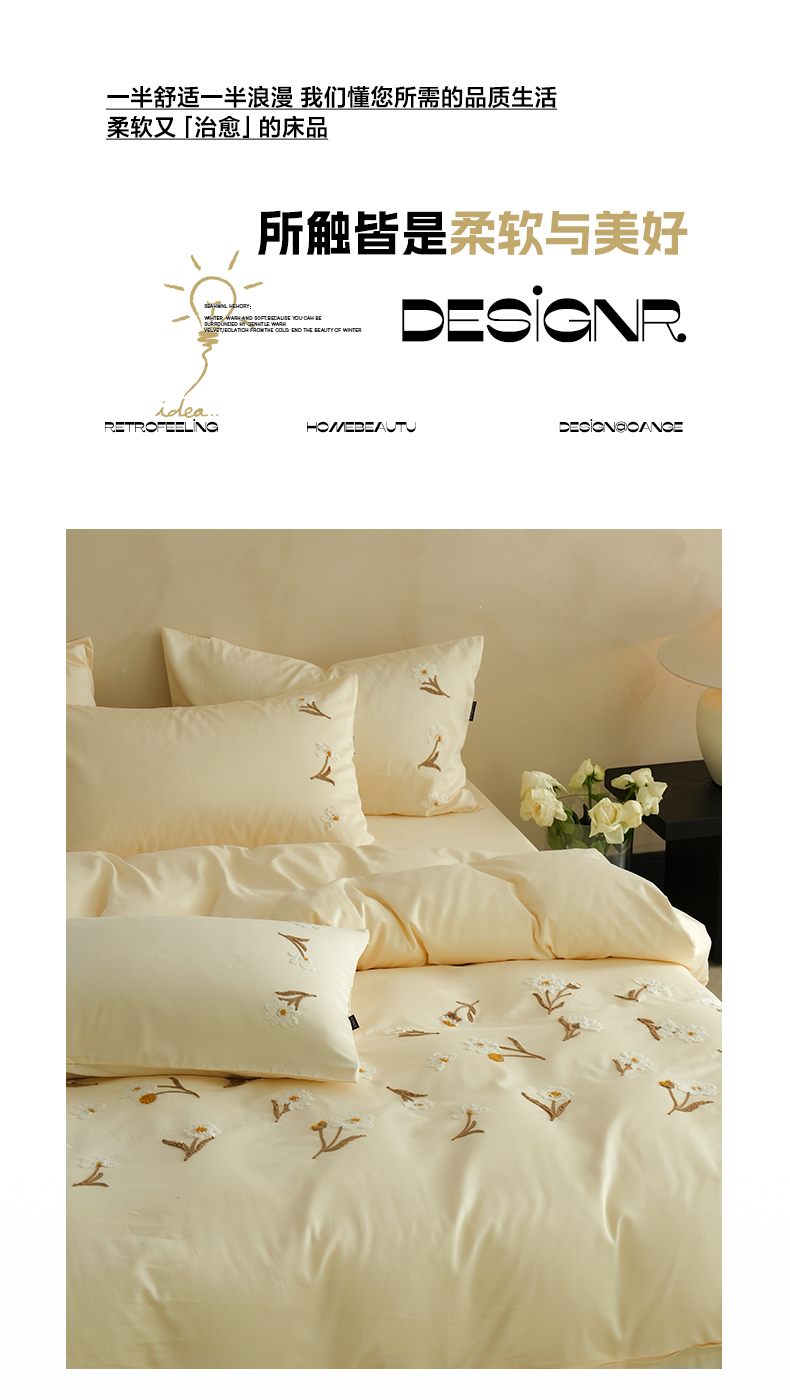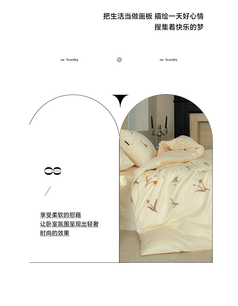 秀色家纺 2025新款小清新60s长绒棉四件套纯棉全棉毛巾绣被套床单轻奢床品-网红风 小雏菊