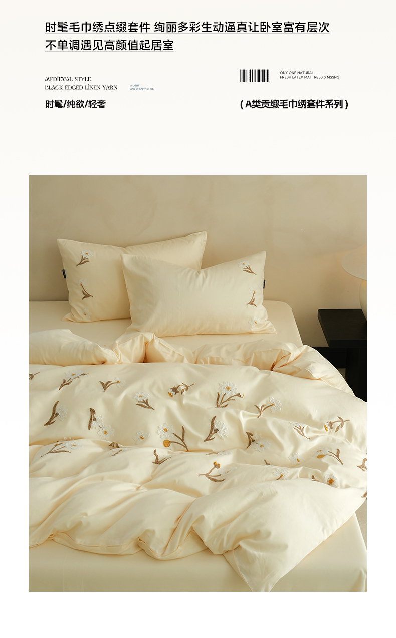 商品名称:秀色家纺 2025新款小清新60s长绒棉四件套纯棉全棉毛巾绣被套床单轻奢床品-网红风 小雏菊