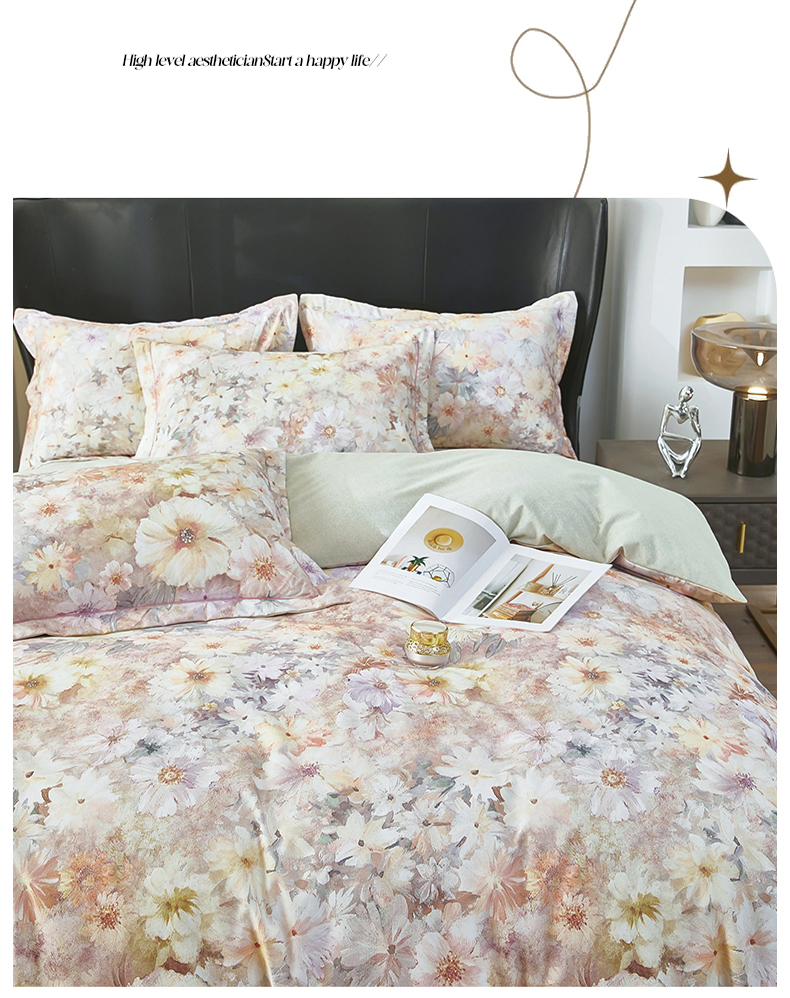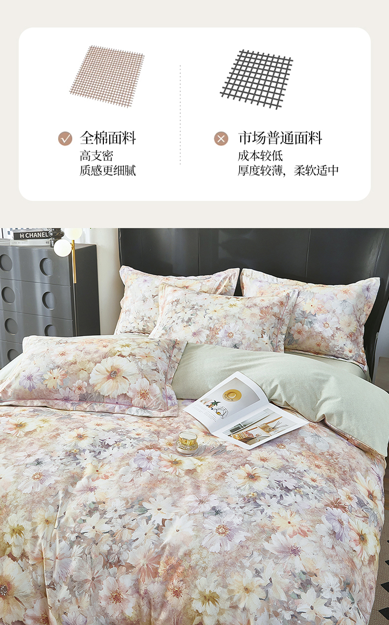 商品名称:雲归梦 2025春夏新款全棉纯棉5D数码印花四件套 花开雏菊-绿