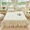 漫布云 2025新款凉豆豆PE凉感丝花边床裙款冰豆豆凉席床盖三件套 四叶草-奶白