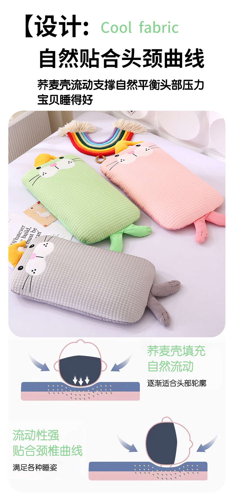 商品名称:蔻眠 小海狮-夏季凉感丝卡通荞麦枕头儿童学生防出汗专用枕芯 主图