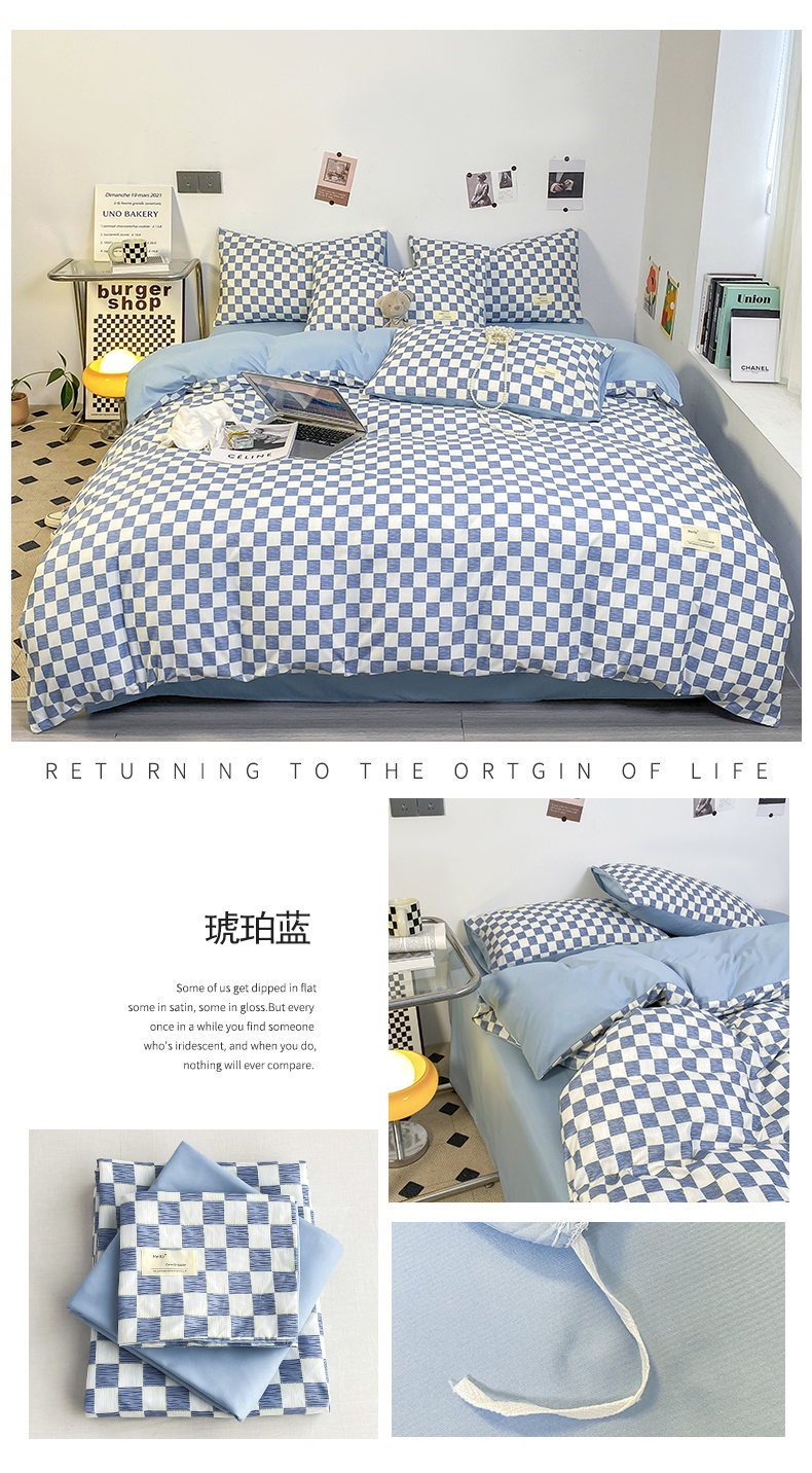 当前位置: 91家纺网 > 商品网购 > 床品套件 > 四件套 > 雅阁尔家纺2025新款无印良品风棋盘格贴标四件套 琥珀蓝