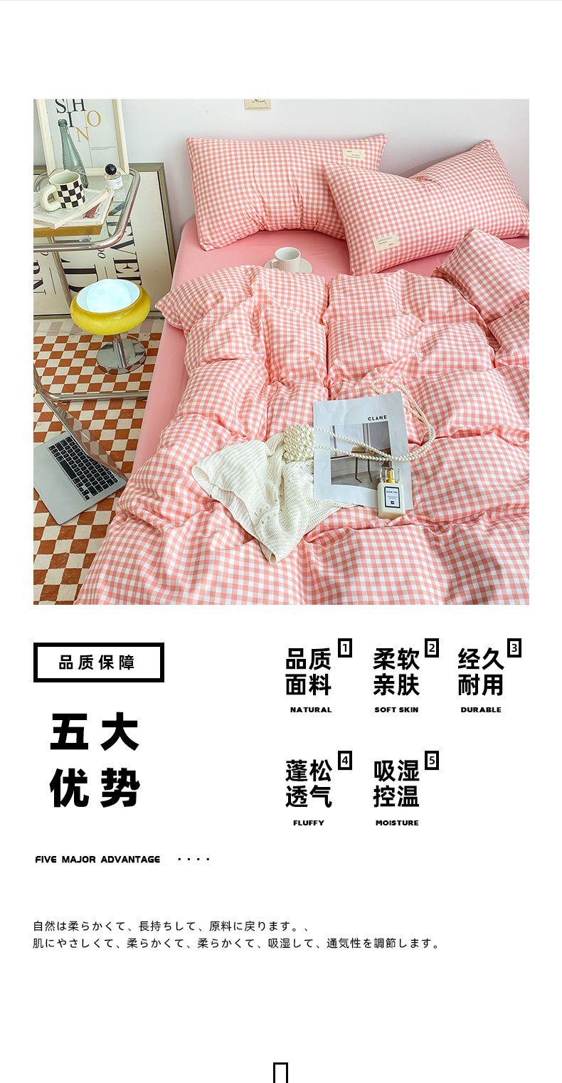 当前位置: 91家纺网 > 商品网购 > 床品套件 > 四件套 > 雅阁尔家纺2025新款无印良品风棋盘格贴标四件套 玉小格