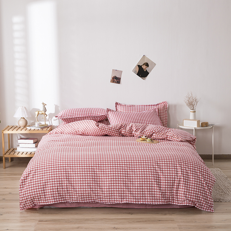 (总)港岛妹妹 2026新款双层纱格条系列四件套,简约浅咖格,奶油黑格,奶油蓝棕条,奶油墨灰格,简约英伦条,奶油焦糖格,奶油雾蓝咖格,奶油青栗格,奶油云木格