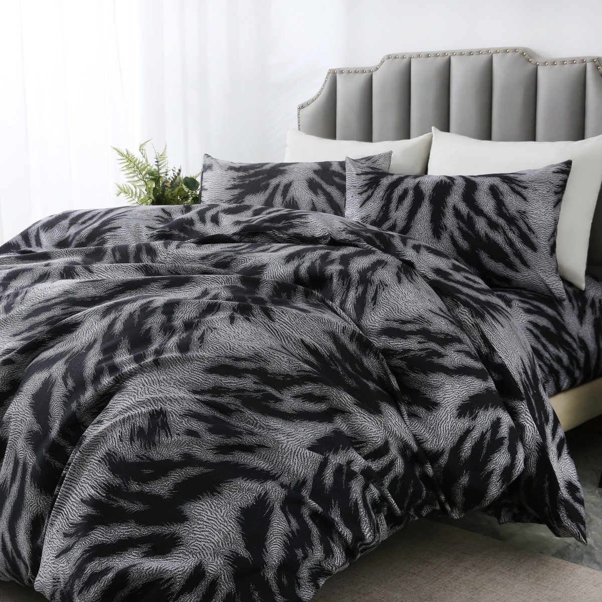 当前位置: 91家纺网 > 商品网购 > 跨境商品 > 床上用品(Bedding) > 床品套件(Bedding Comforter Sets) > 子不语家纺2025新款跨境外贸 大版印花三件套亚马逊Temu速卖 通Shein沃尔玛专供 98黑纹理