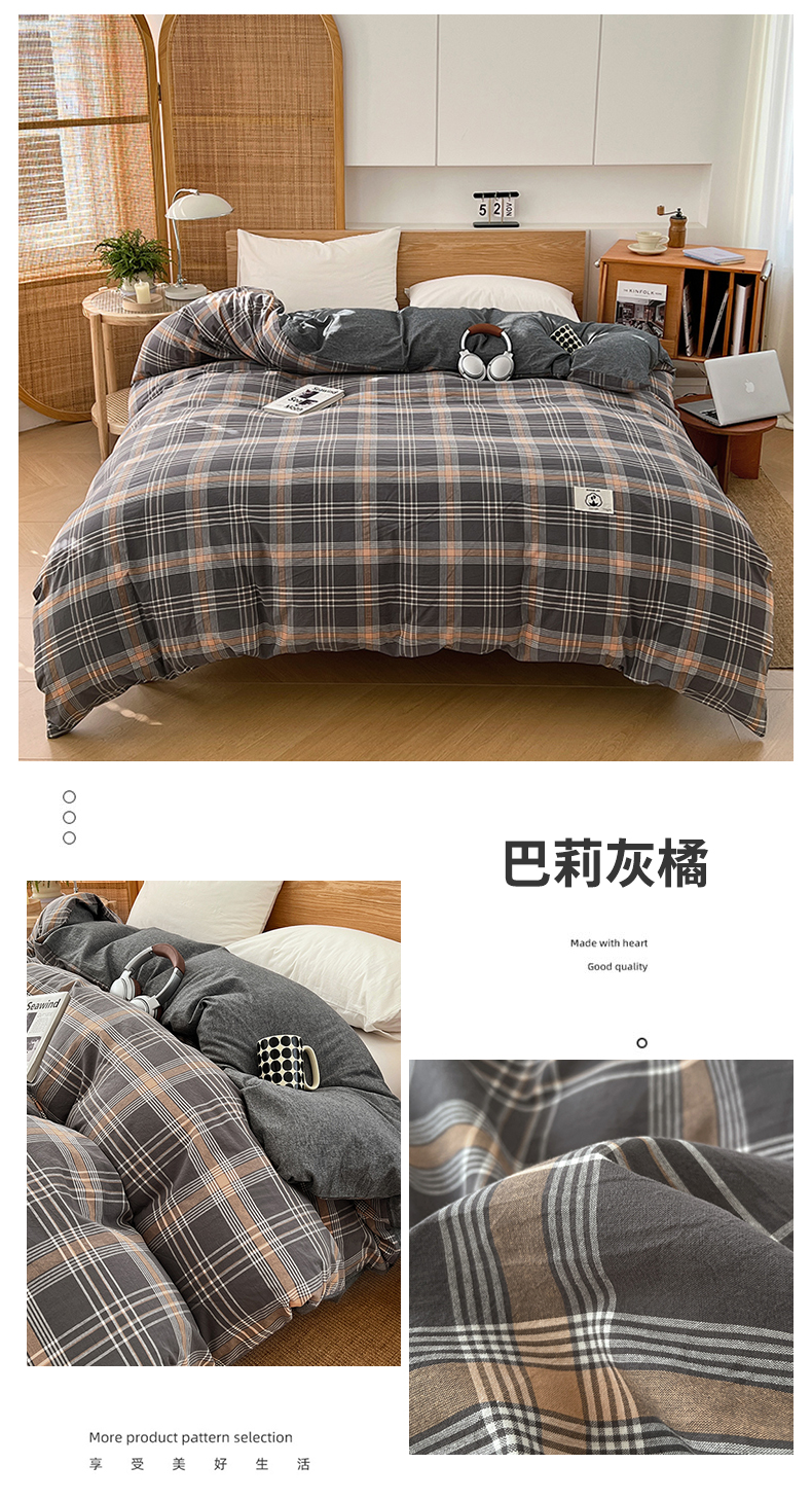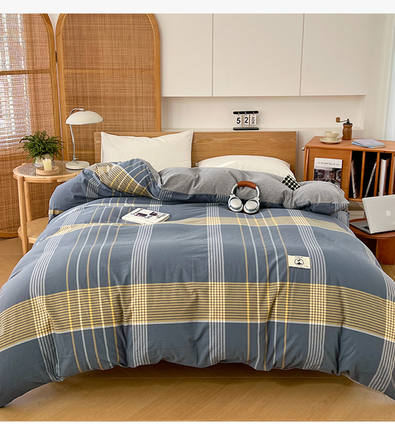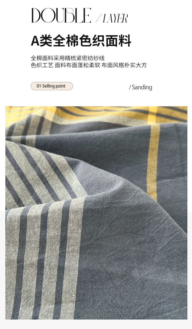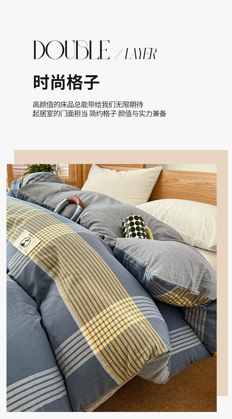 商品名称:(总)2025新款色织全棉水洗棉单被套日式复古风被套床单枕套床品套件