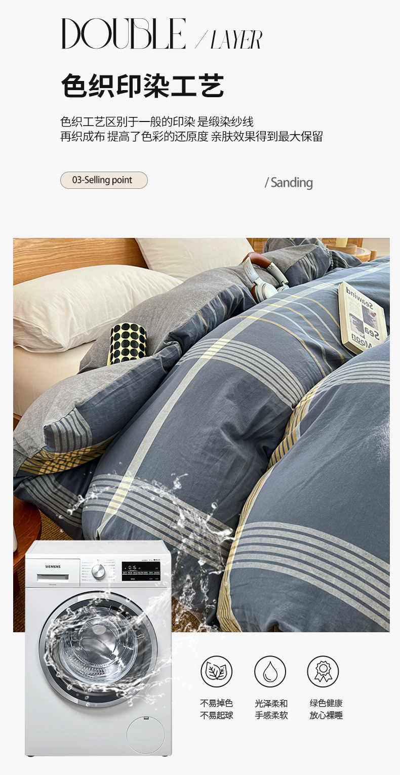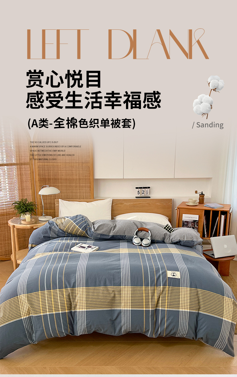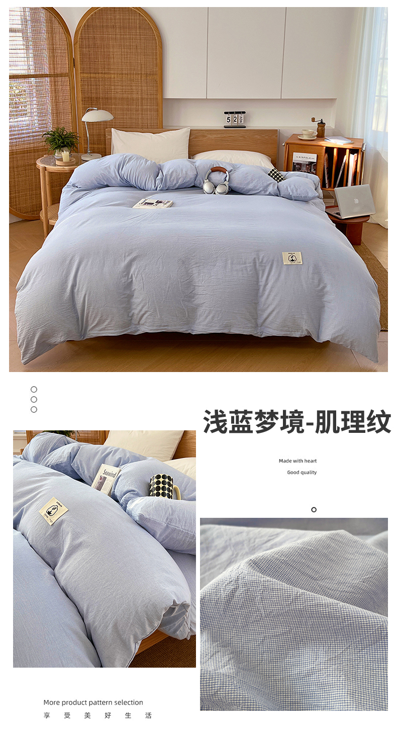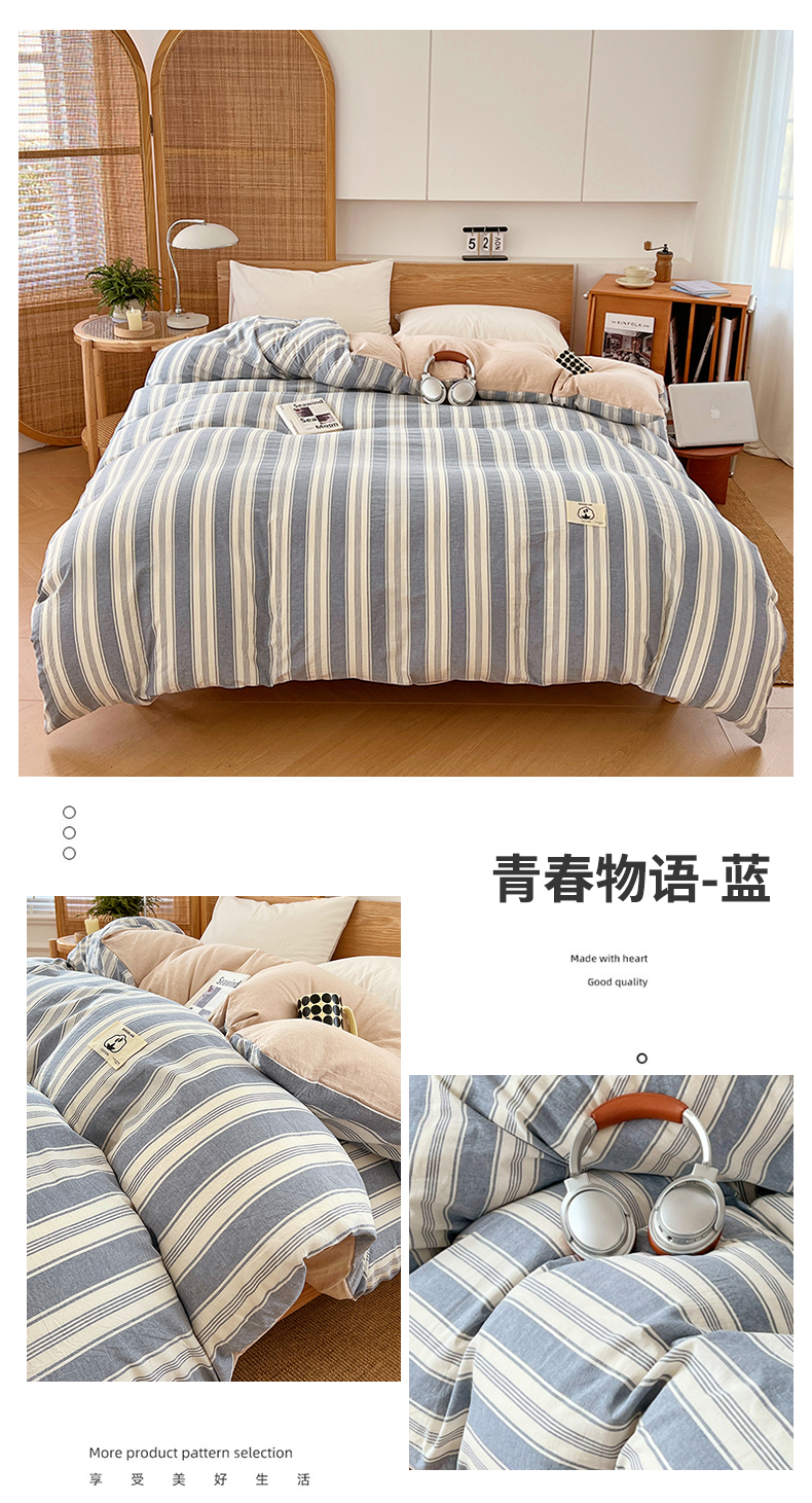 商品名称:(总)2025新款色织全棉水洗棉单被套日式复古风被套床单枕套床品套件