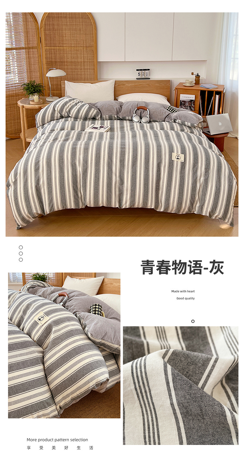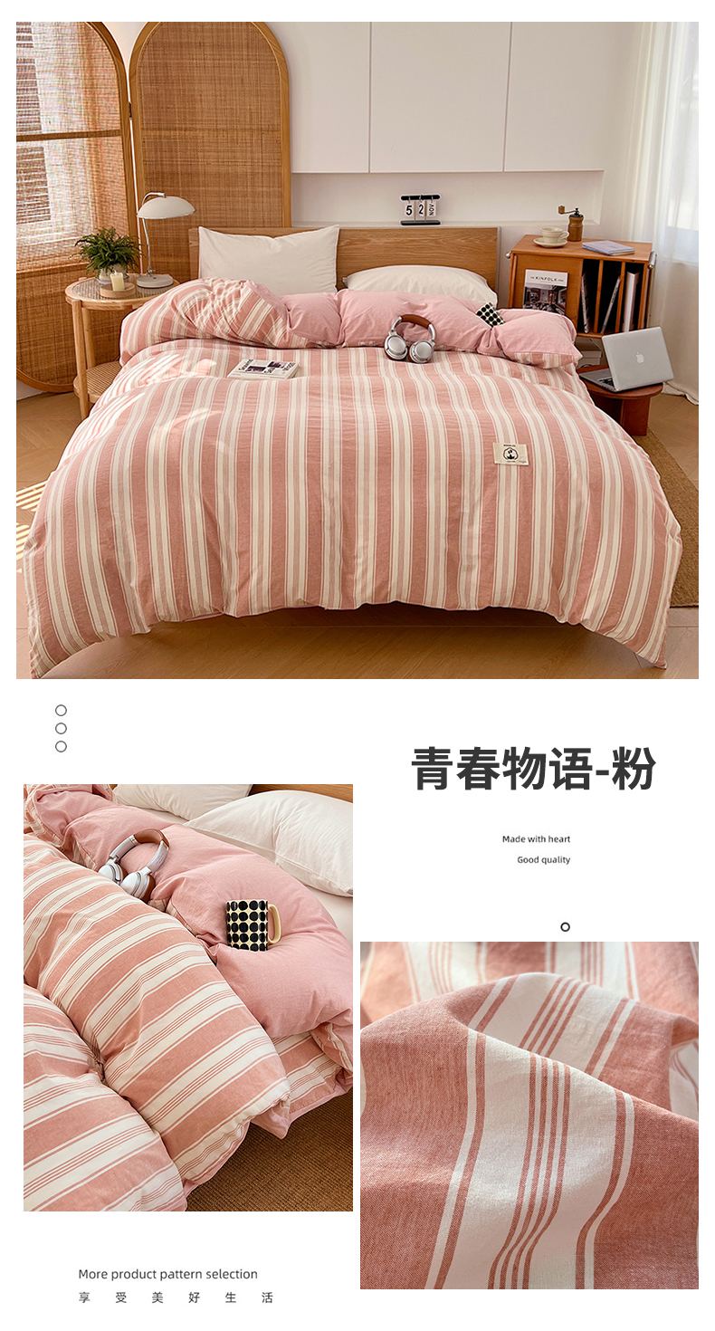 (总)2025新款色织全棉水洗棉单被套日式复古风被套床单枕套床品套件