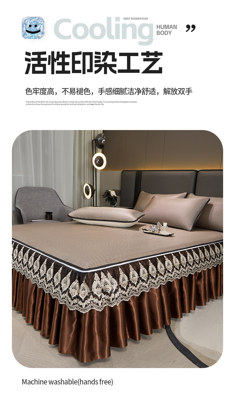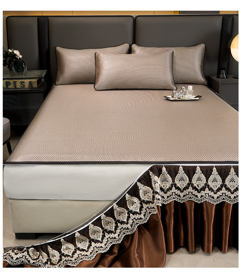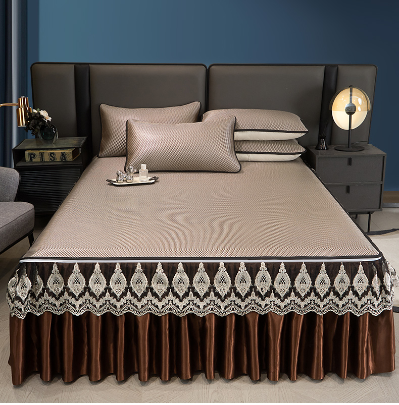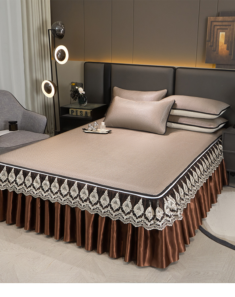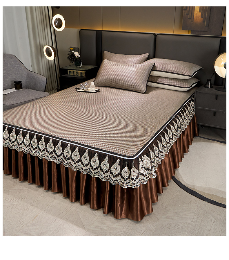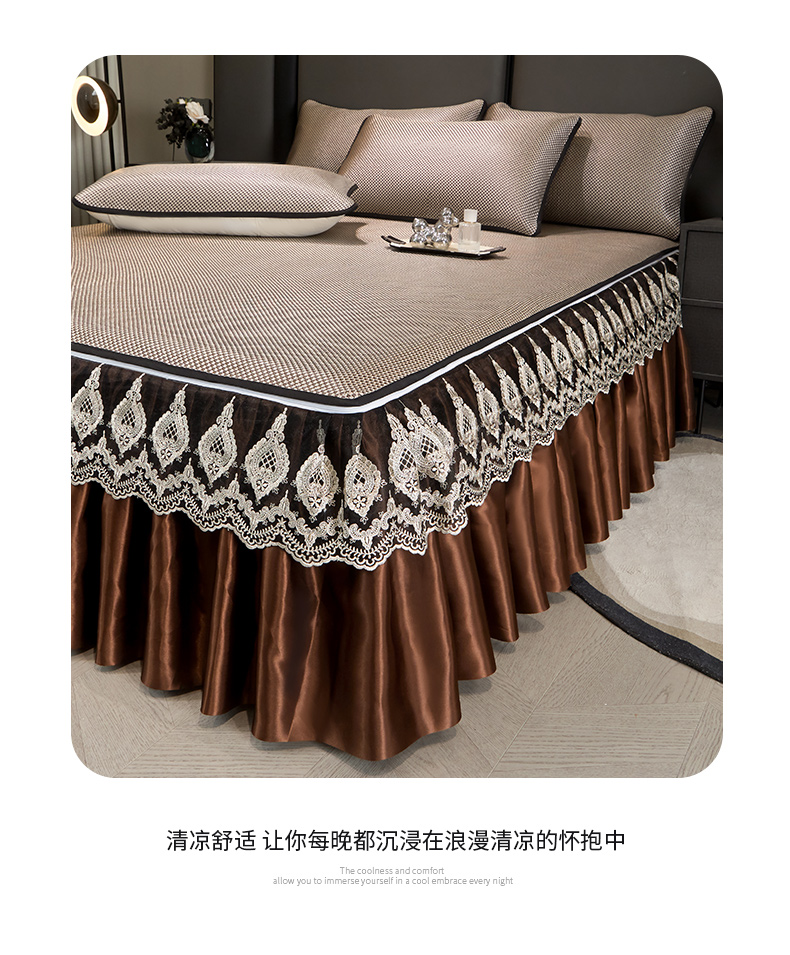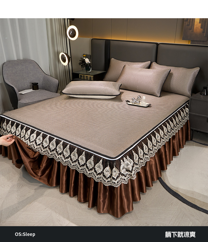 • 91家纺网 家纺一手货源 找家纺 恋尚 2025新款可拆卸床裙款冰藤凉席 冰藤床裙凉席- 柏姬咖色(控价198起)