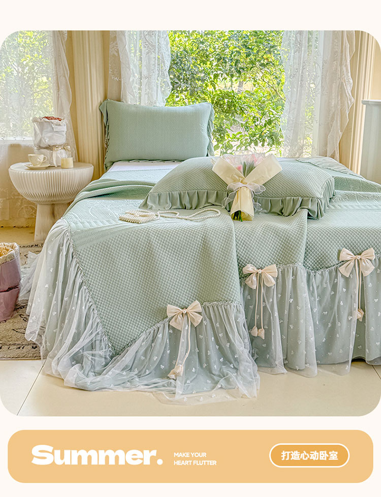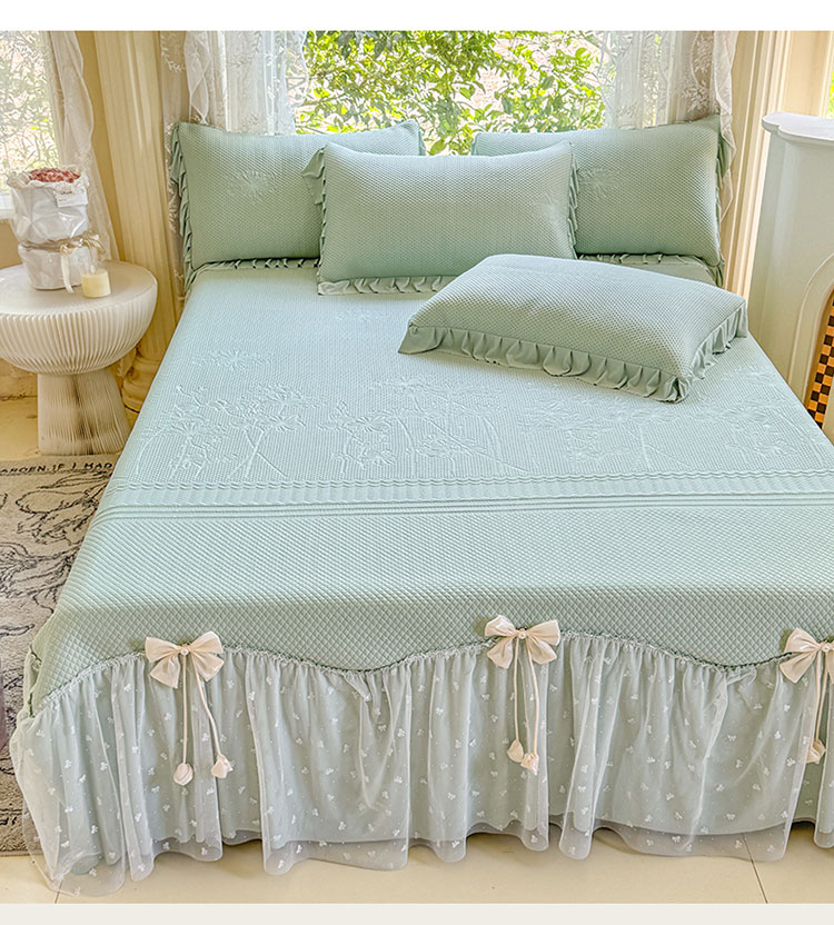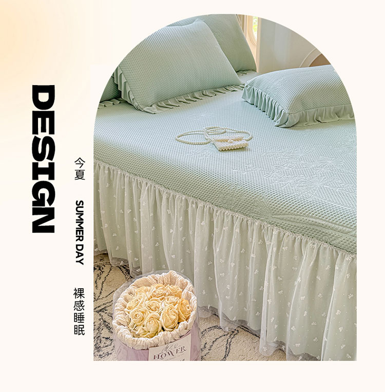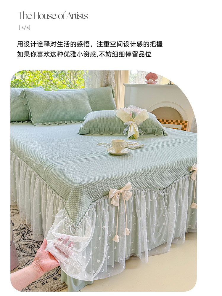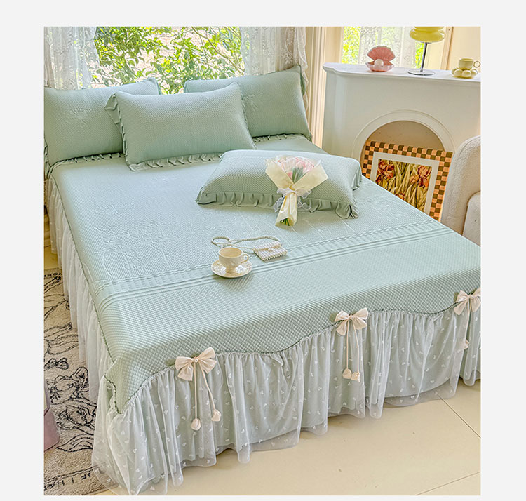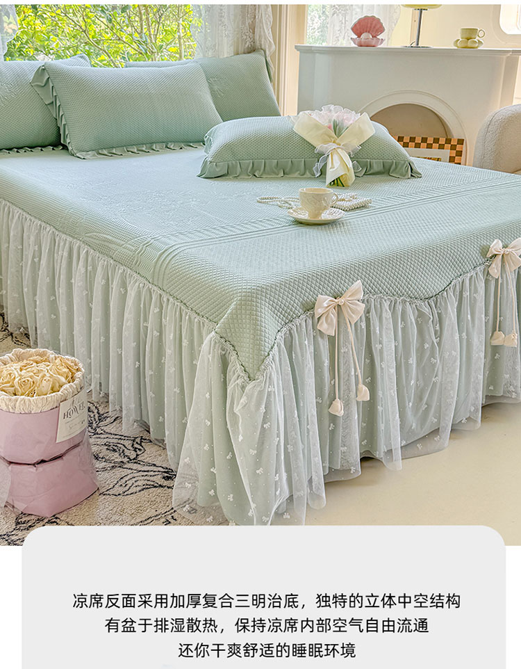 商品名称:(总)【苏东来】2025高端法式韩版公主花边PE高分子复合软凉席床裙款三件套纯色蕾丝花边豆豆床裙床单床盖冰丝凉席子三件套件空调席