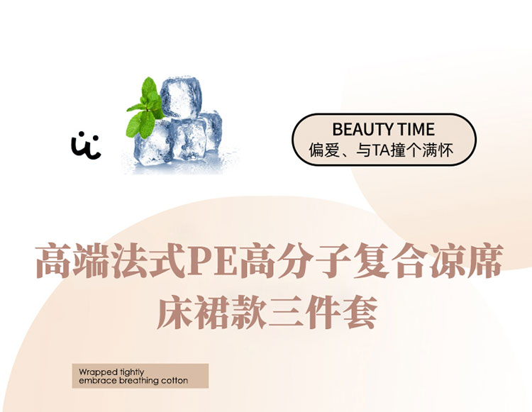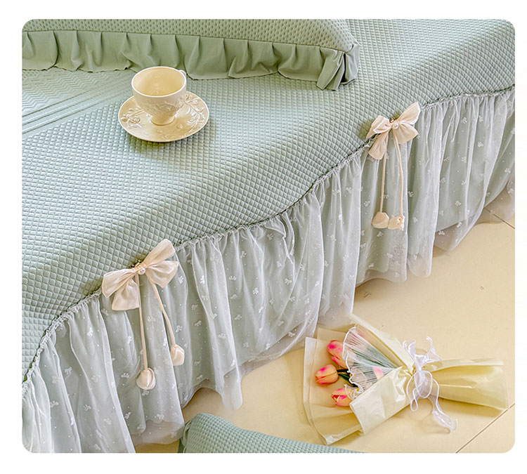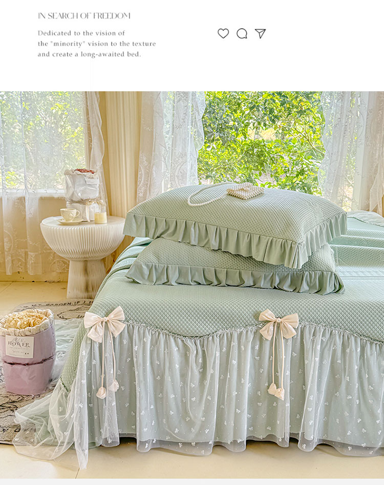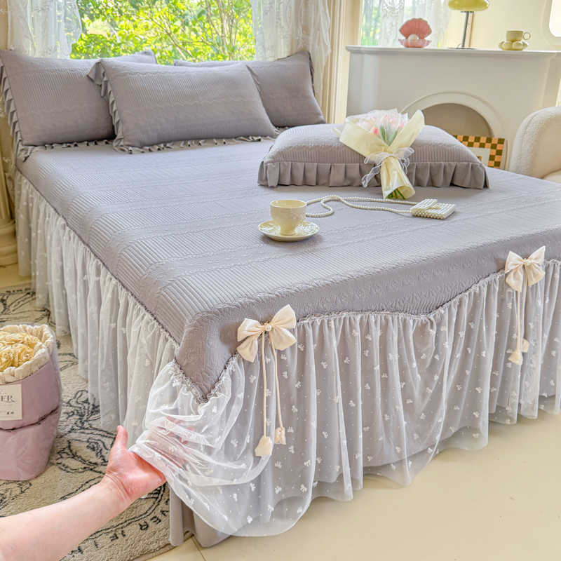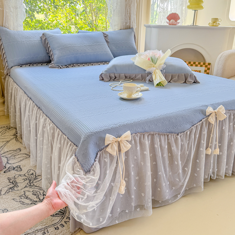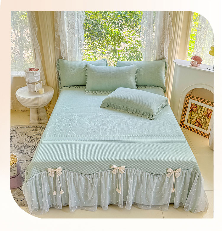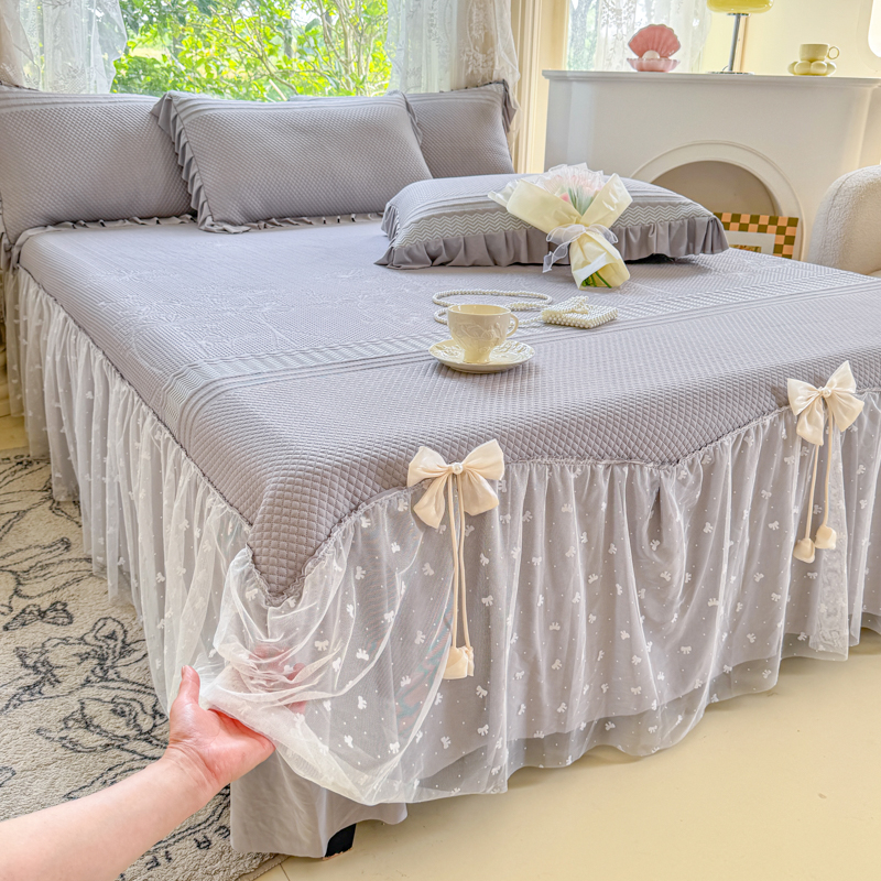 商品名称:(总)【苏东来】2025高端法式韩版公主花边PE高分子复合软凉席床裙款三件套纯色蕾丝花边豆豆床裙床单床盖冰丝凉席子三件套件空调席