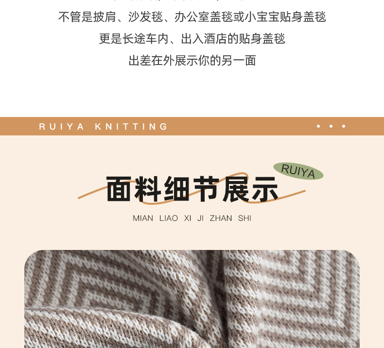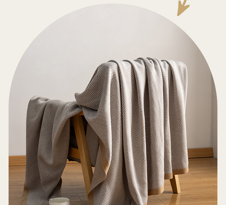 商品名称:肖恩毯业 2025新款轻奢晴纶针织毯人字纹回字纹休闲时尚盖毯航空毯毯子毛毯 回字纹浅灰