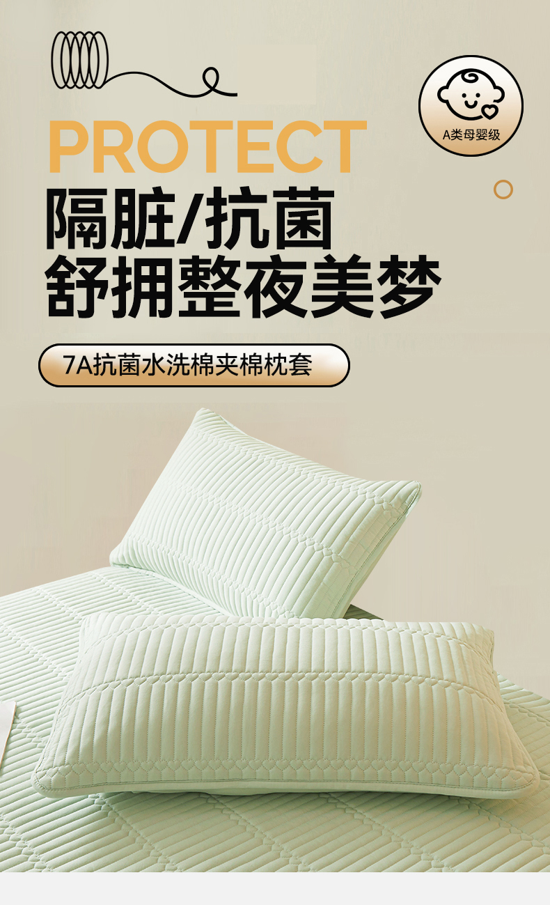 商品名称:雯豆家纺 2025新款简爱防水款夹棉加厚枕套单只一对装水洗棉枕套 简爱-清雅绿