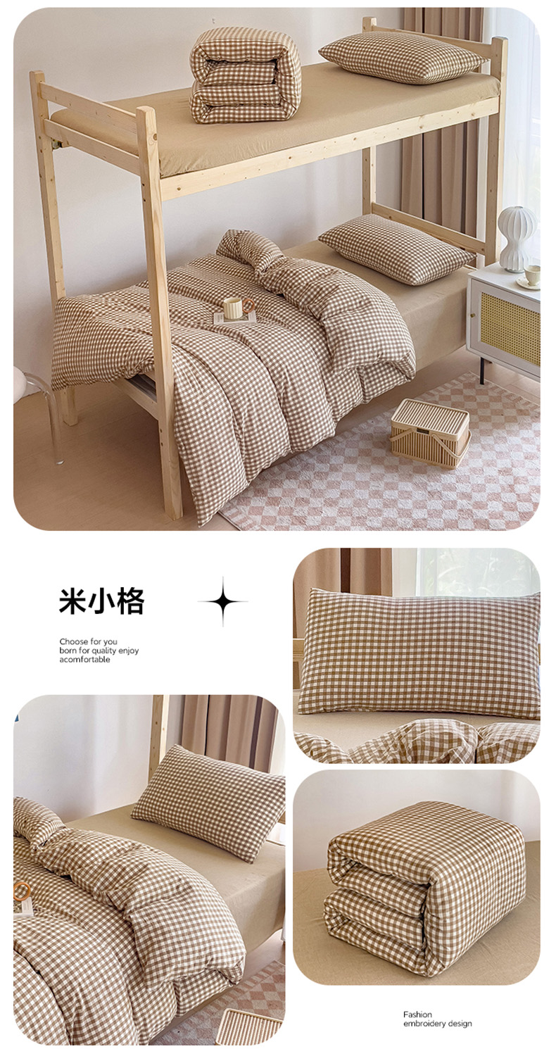 当前位置: 91家纺网 > 商品网购 > 床品套件 > 三件套 > 玖弘家居 2025新款全棉纯棉色织水洗棉学生宿舍三件套四件套上下铺三件套 蓝大格