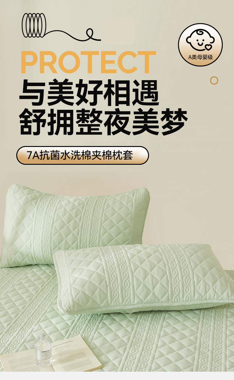 商品名称:雯豆家纺 2025新款简爱夹棉加厚枕套单只一对装水洗棉纯色枕芯保护套 梵可-清雅绿
