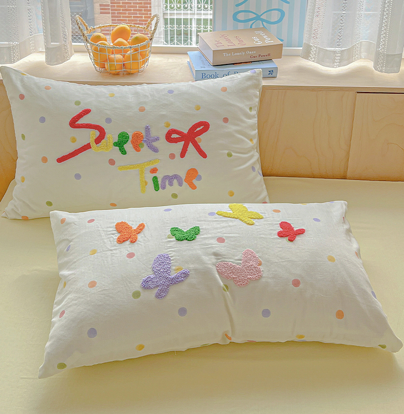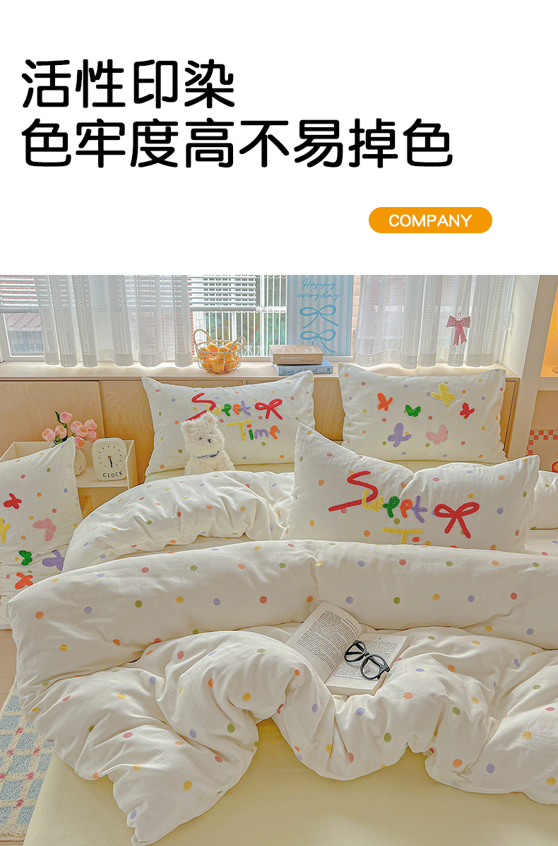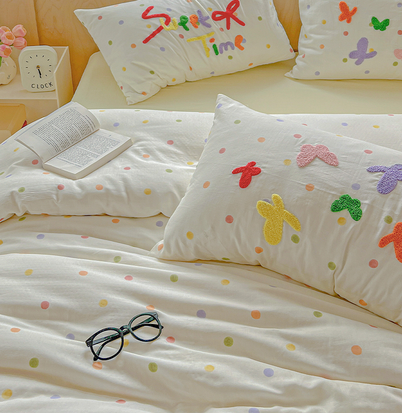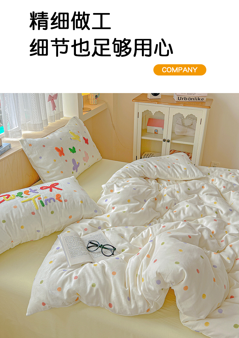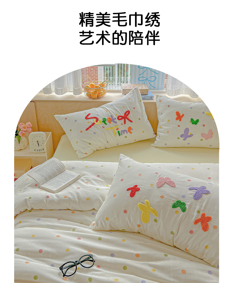 (总)静家居-简约原创家纺 2025新款A类全棉双层纱sweet毛巾绣四件套,彩墨流砂,大彩,蝶舞,小熊软糖,星线